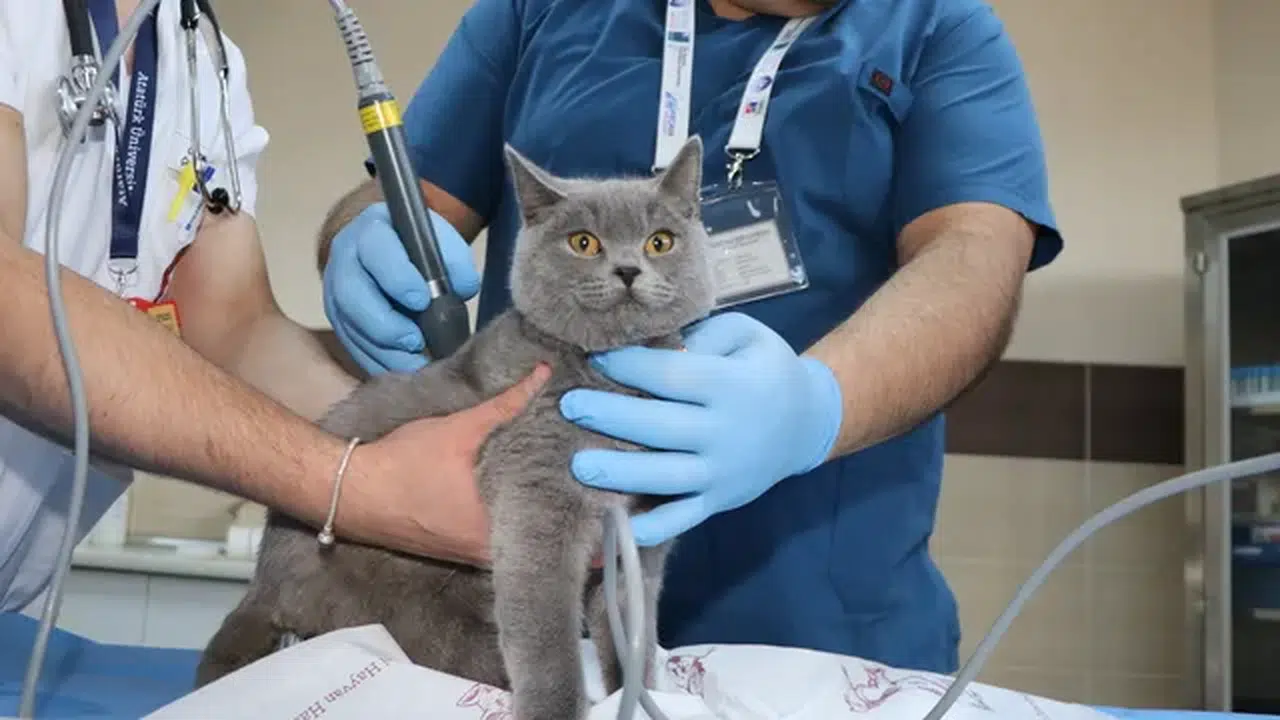 Yapılan tetkiklerde omuriliğinde kırıklar tespit edilen kedi, bir süre yoğun bakımda takip edildi.