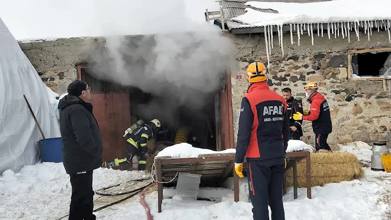 Aziziye ilçesi Kahramanlar Mahallesi’nde büyükbaş besiciliği yapılan ahırda, öğle saatlerinde ot makinesi çalıştığı sırada elektrik kontağından yangın çıktı. Kısa sürede dumanlar ahırı sardı. İhbar üzerine bölgeye polis, itfaiye, AFAD ve sağlık ekibi sevk edildi. Gaz maskeleriyle yoğun dumanın bulunduğu ahıra giren itfaiye ve AFAD görevlileri 85 büyükbaşı kurtarmayı başardı. İtfaiye ekiplerinin çalışması sonucu yangın söndürüldü.