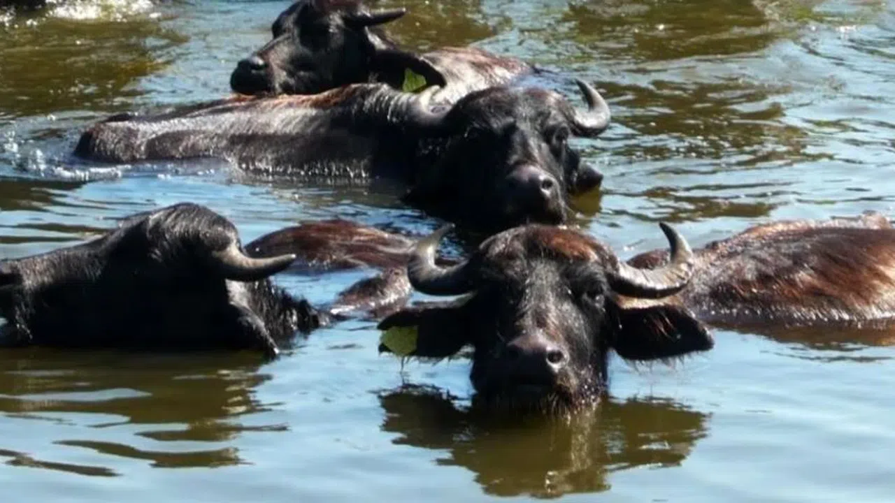 Erzurum'un birkaç kilometre uzağında yer alan Söğütlü köyünde yetiştirilen mandalar, sıcak havalardan bunalan keyifli anlarını dere içinde yaşarken, bu manzara adeta Tanzanya'nın Serengeti Milli Parkı'nı andırıyor.