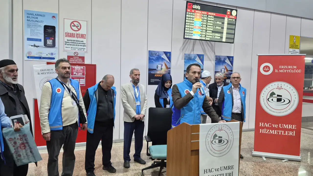 Erzurum Havalimanı, 2026'nın ilk hacı kafilesine ev sahipliği yaptı. 159 hacı adayı, 6 görevli ile Medine'ye uğurlandı. Duygu dolu anların yaşandığı törende dualar edildi ve ailelerle vedalaşma anları gözyaşlarıyla doldu. Hac yolculuğunun hayırlı geçmesi temenni edildi.