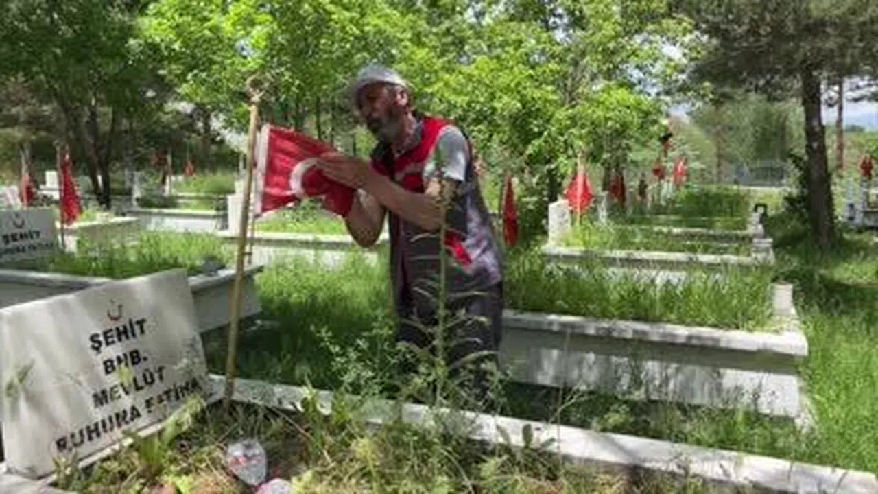 Kabirleri sulamadan otları biçmeye kadar şehitlikte gereken bakım onarım çalışmalarını yaz kış sürdüren Erzincanlı, şehitlikteki yaklaşık 250 bayrağı, her gün tek tek kontrol ediyor, lekelenen ve yıprananları elleriyle yıkayarak özenle koruyor.