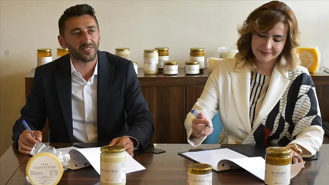 Protokolle, kırsal mahallede üretilen tereyağı, kaşar peyniri, bal ve kuşburnu özü gibi 24 çeşit ürün, Erzurum Kadın Kooperatifi aracılığıyla ülke geneline pazarlanacak.