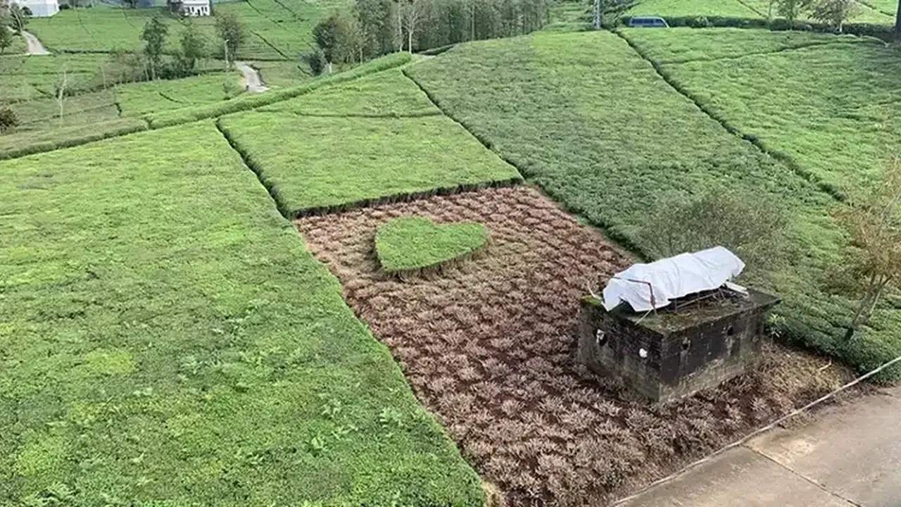Evinin balkonundan bu manzarayı gören 3 çocuk annesi Meryem Öztürk, şaşkınlığını gizleyemedi. Bahçenin fotoğrafı, sosyal medyada yoğun ilgi gördü. Takipçiler, fotoğraf için ‘Çay love you’, ‘Rizelinin böyle olur sevgisi’, ‘Ne yaparsan yap aşk ile yap’ yorumlarında bulunarak, çifte mutluluklar diledi.