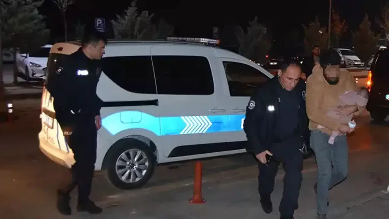 Eşini bıçaklayan şüphelinin gözaltına alınırken kucağındaki bebek, devlet korumasında