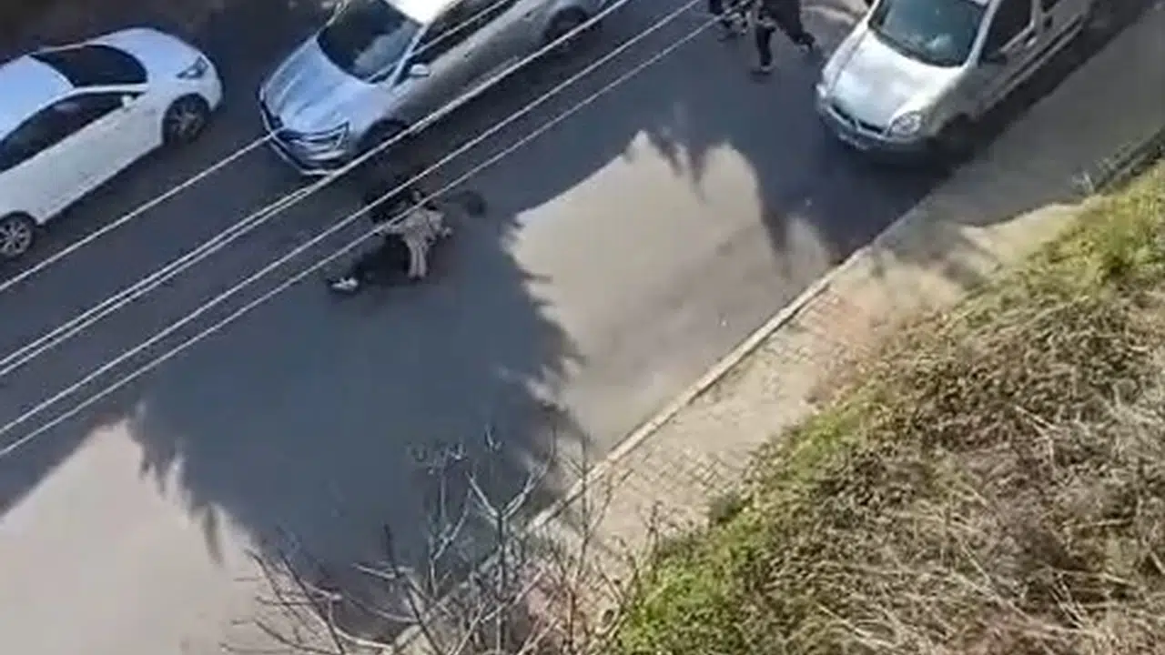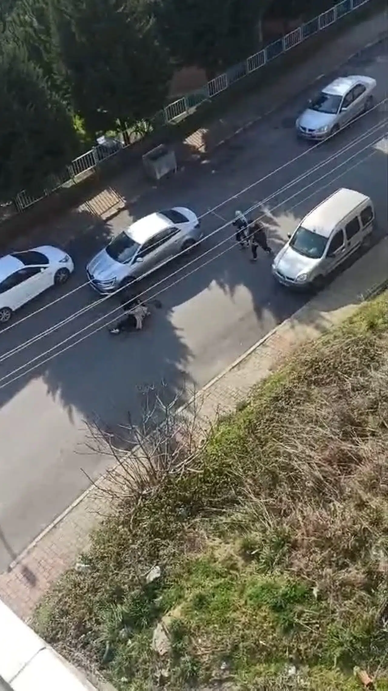 Kocaeli'de Tuncay A.’nın eski eşi Tuğba H.’yi cadde ortasında defalarca bıçakladığı anlar ve çevredekilerin şüpheliye müdahalesi, cep telefonu kamerasıyla görüntülendi. Görüntüde; Tuncay A.’nın Tuğba H.’yi bıçakladığı, sopalarla yaklaşan kişileri görünce bıçağı attığı anlar yer aldı. Bir otomobilin Tuncay A.’nın önünü kestiği ve vatandaşların Tuncay A.’yı darbettiği sırada ayağa kalkan Tuğba H.’nin ‘Benim çocuklarımın babası’ diye bağırarak kalabalığı ayırmaya çalıştığı anlar da görüntülere yansıdı. (DHA)