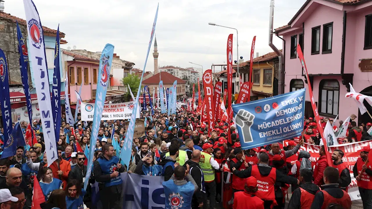 Eskişehir’de 1 Mayıs Emek ve Dayanışma Günü, DİSK ve KESK'e bağlı sendikalar tarafından düzenlenen yürüyüşle başladı. Atatürk Bulvarı üzerinde buluşan sendika temsilcileri ve işçilerden oluşan yaklaşık 5 bin kişi, 6 kilometre yürüyerek Odunpazarı Meydanı’na geldi. DİSK Eskişehir Bölge Temsilcisi Zeynep Kaya, eşitlik, özgürlük, adalet, barış ve demokrasi için alanlarda olduklarını ifade ederek, “Biz bu ülkenin tüm değerlerini ve güzelliklerini üretenleriz. Biz işçiler, kamu emekçileri, mühendisler, mimarlar, şehir plancıları, hekimler, emekliler, gençler, kadınlar. Bugün ülkenin dört bir yanında 1 Mayıs meydanlarında buluştuk. Biz tüm renklerimiz ve farklılıklarımızla Türkiye’yiz” dedi.