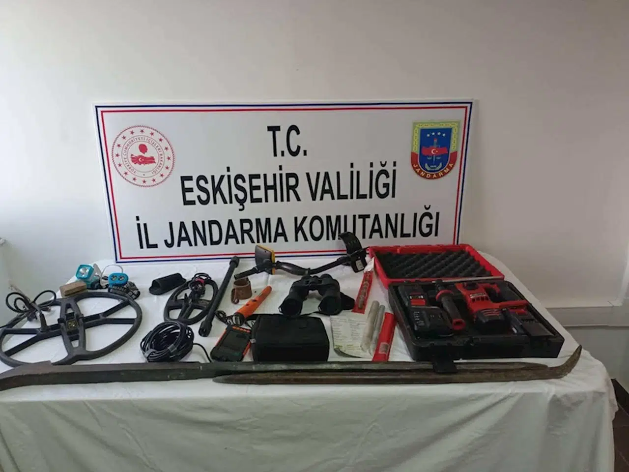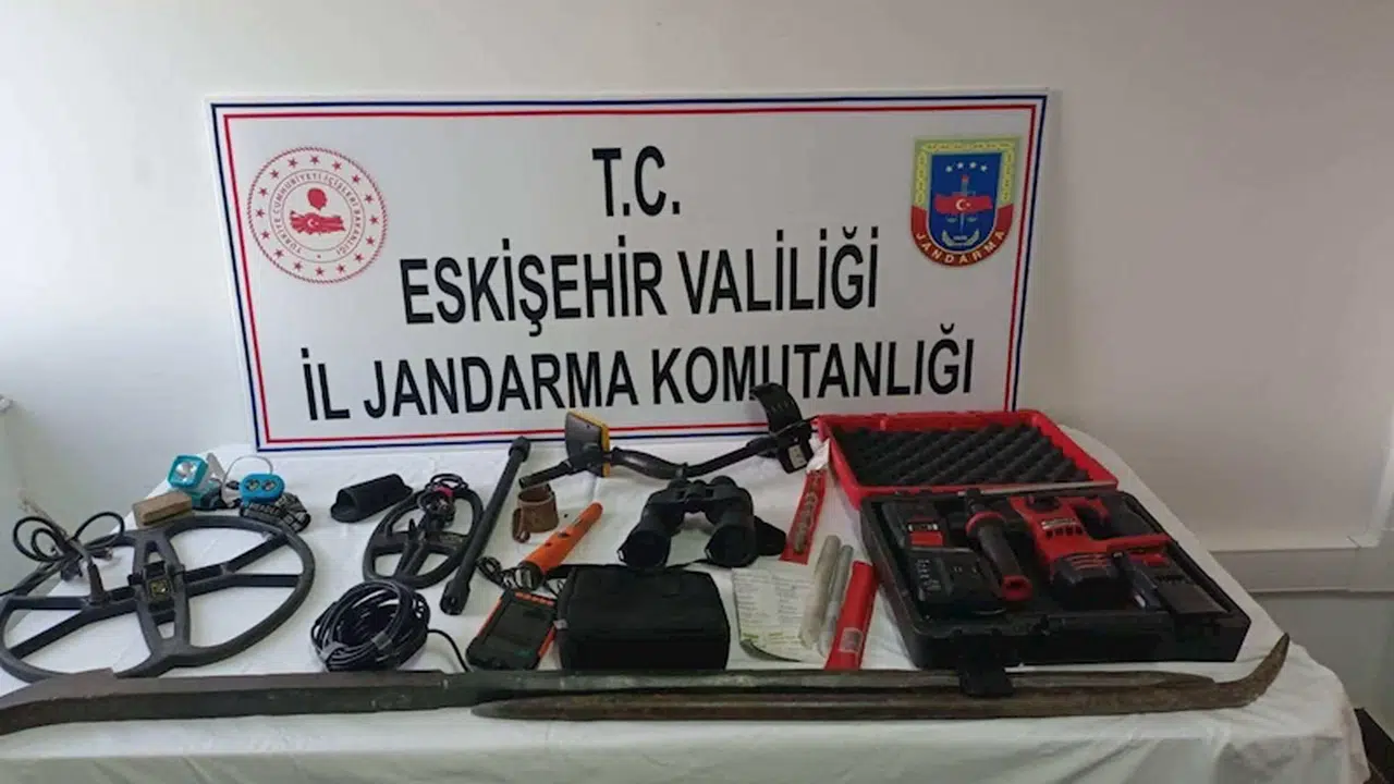 Eskişehir Jandarma Komutanlığı ekipleri, Sivrihisar ilçesine bağlı Karakaya mevkiinde kaçak kazı yapıldığı bilgisi üzerine harekete geçti. Bölgede araştırma yapan ekipler, 4 şüpheliyi define bulma amacıyla izinsiz kazı yaparken suçüstü yakaladı. Kazı alanında matkap, 2 adet el dedektörü, yılan kamera, el dürbünü, kazı malzemeleri ile 2 adet tarihi eser olduğu değerlendirilen obje ele geçirildi. Sağlık kontrolünden geçirilerek gözaltına alınan 4 şüpheli hakkında ‘Kültür ve Tabiat Varlığı Koruma Kanunu’na muhalefet suçundan adli soruşturma başlatıldı. (DHA)