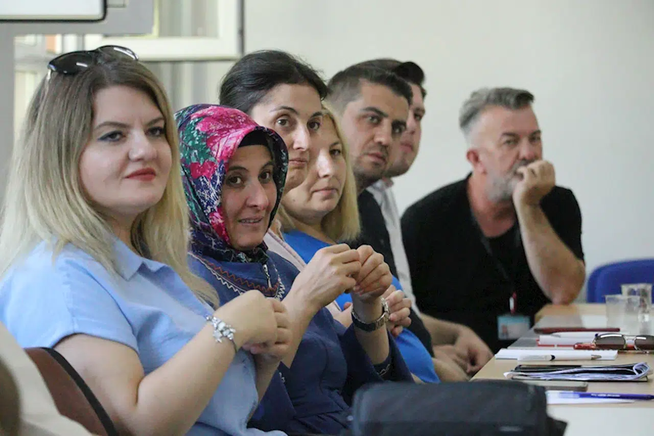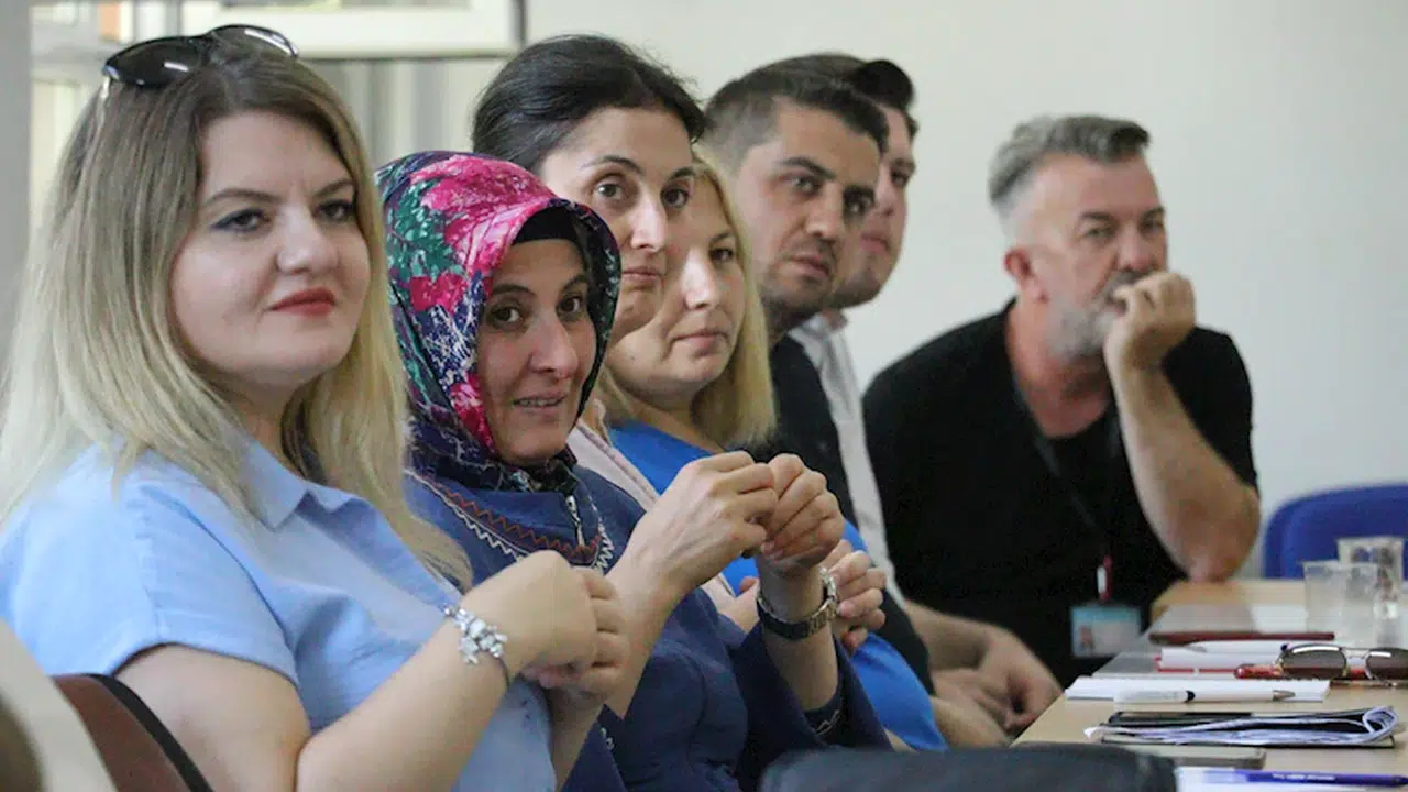 Atatürk Mesleki ve Teknik Anadolu Lisesi toplantı salonundaki kursa 63 personelin katıldığını ifade eden dil eğitmeni Sedef Ayhan, “Aslında amaçlanan konu, tüm kamu kurum ve kuruluşlarındaki çalışan bireylerin, işitme engelli vatandaşlarla rahat iletişim kurması, onlarla herhangi bir sorun durumunda yada görüşmek istedikleri alanlarda rahatlıkla iletişim kurmalarını amaçlamak. Onlarla ilgili bizde kursta, kamu kurum ve kuruluşlarında ne gibi konuşmalar olabilir yada bir istek, öneri, şikayet gibi durumlarda bu şekilde onlara değinerek kalıplaşmış, işitme engellilerin kullandığı kalıplı cümlelerde ve tüm günlük hayatta kullandıkları kelimelere değiniyoruz. Kamu kurum ve kuruluşlarındaki çalışanlarda gönüllü olarak katılım sağlıyorlar” dedi.