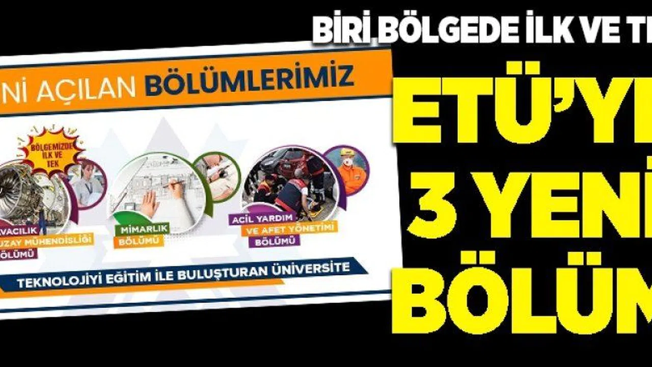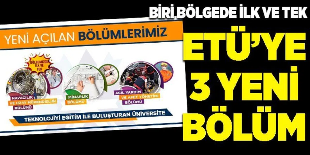 ETÜ'nun Mühendislik ve Mimarlık Fakültesi bünyesinde, Havacılık ve Uzay Mühendisliği Bölümü ve Mimarlık Bölümü; Sağlık Bilimleri Fakültesi bünyesinde ise, Acil Yardım ve Afet Yönetimi Bölümü ilk öğrencileriyle buluşacak.