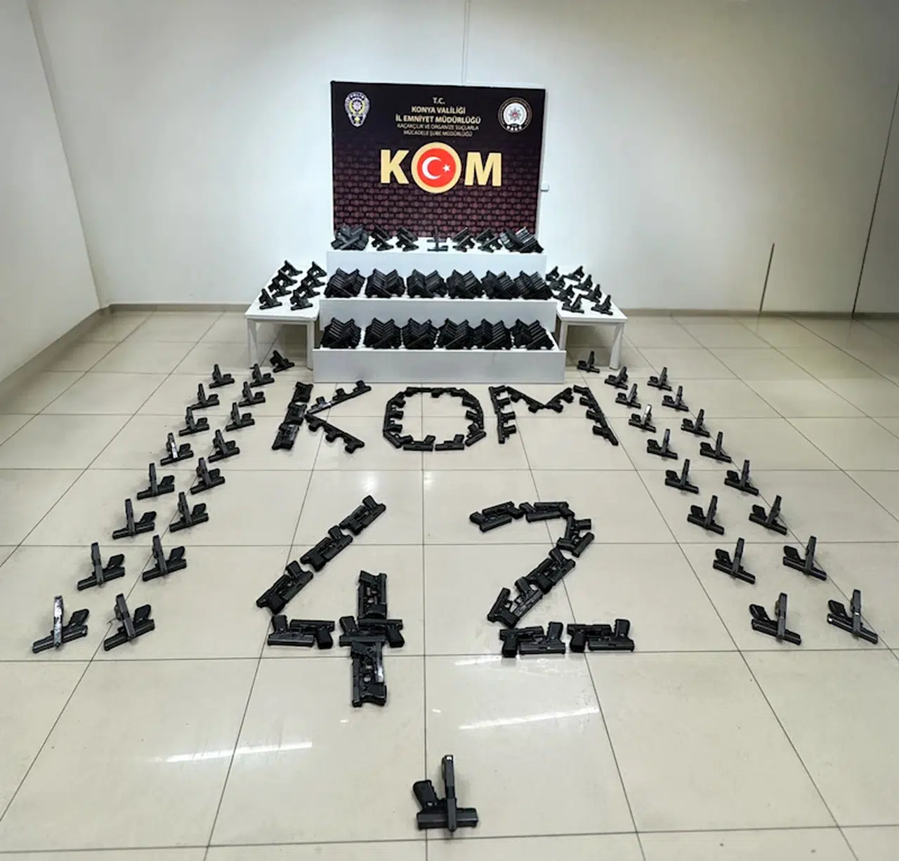 Konya Emniyet Müdürlüğü Kaçakçılık ve Organize Suçlarla Mücadele şubesi ekipleri, bir evde tabanca üretildiği ihbarı sonrası harekete geçti. Ekipler, yaklaşık 6 ay süren fiziki ve teknik takibin ardından Selçuklu ilçesinde belirlenen adrese operasyon düzenledi. Operasyonda kaçak üretilen 400 tabanca ele geçirildi. Baba R.G. ile oğlu M.G. gözaltına alındı. Baba ve oğul, emniyetteki işlemlerinin ardından sevk edildikleri adliyede çıkarıldıkları mahkemede tutuklandı. (DHA)