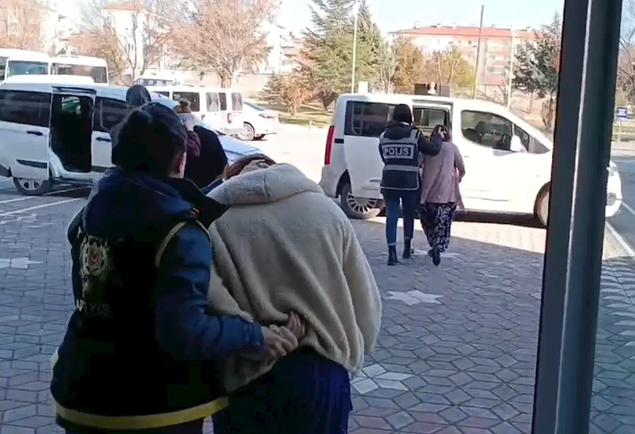 Aksaray Emniyet Müdürlüğü Asayiş Şubesi ekipleri, Fatih Mahallesinde bir evin kapısı 'dil düşürme' yöntemiyle açılıp, 115 bin TL ziynet eşyası çalınması üzerine çalışma başlattı. Yapılan çalışma sonucu şüphelilerin Gülseren Üçyıldız (33), akrabaları Saniye Üçyıldız (46) ve Aycan Üçyıldız oldukları belirledi. 3 kadın, düzenlenen operasyonla saklandıkları evde yakalandı. Gözaltına alınan şüpheliler, çaldıkları ziynet eşyaları satıp, parasını harcadıklarını belirtti. Emniyetteki işlemlerinin ardından adliyeye sevk edilen 3 kadın, mahkemece tutuklandı. (DHA)FOTOĞRAFLI