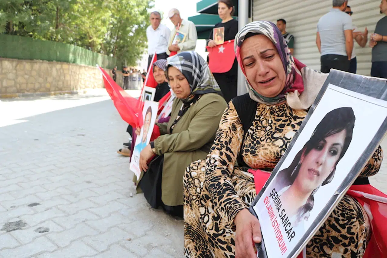 Behçet DALMAZ/VAN,(DHA)-VAN'da dağa kaçırılan çocukları için eylem yapan aileler, 85'inci haftada da Halkların Eşitlik ve Demokrasi Partisi'nin (DEM Parti) il binası önüne yürüyüp, sloganlar attı. Eyleme katılan Necmettin Biçer, kızı Gülcan'ın 2016 yılında Adana'da dağa kaçırıldığını, o günden bu yana haber alamadığını belirterek, 'Teslim ol' çağrısı yaptı.