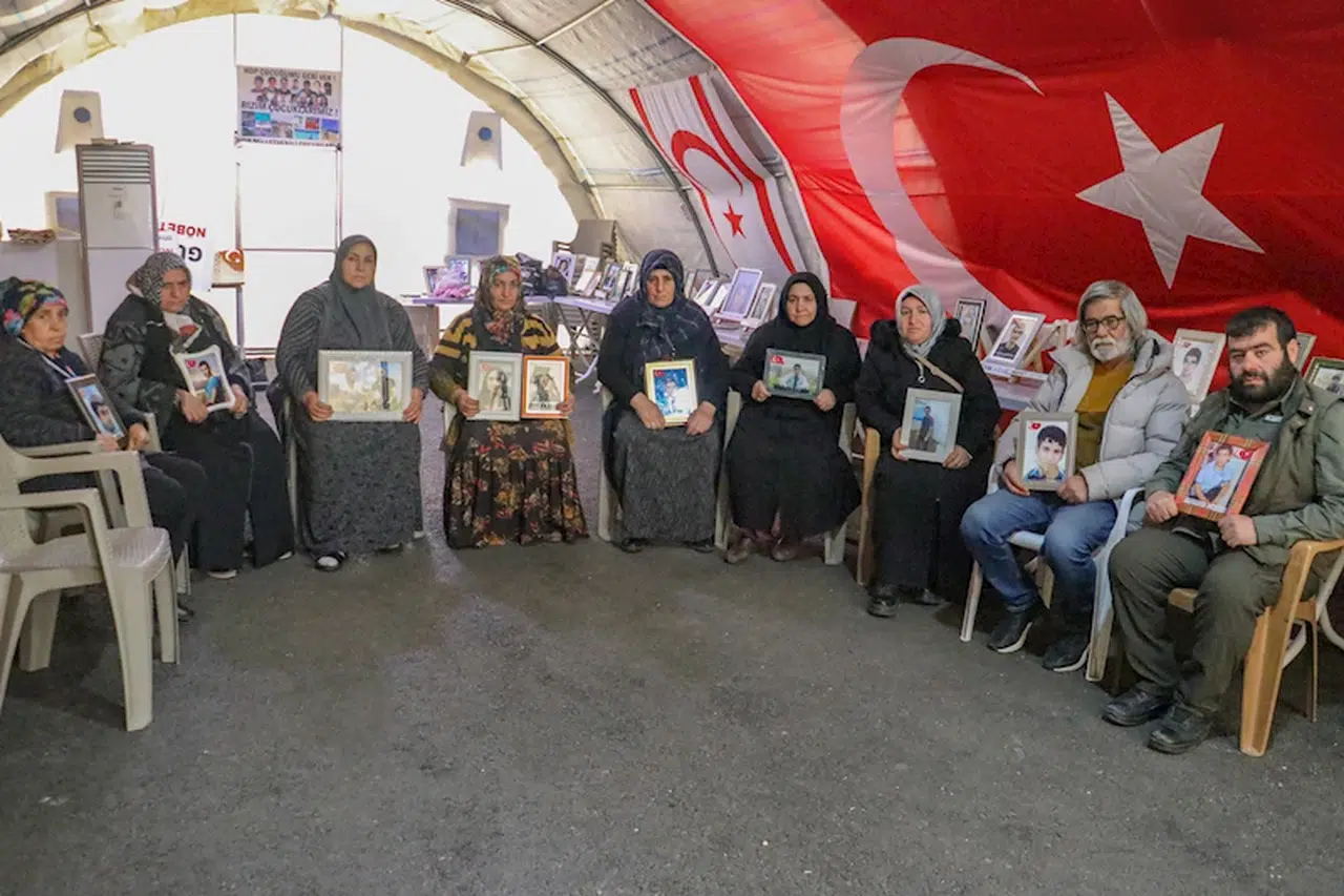 2015'te 16 yaşında kaçırılan oğlu Aziz için eylemini sürdüren Güzide Demir ise "Aziz için buradayım. Yaklaşık 6 senedir buradayız. Bu mücadeleyi devam ettireceğiz. Terörsüz bir Türkiye istiyoruz. Bu sürecin başladığına çok sevindik. İnşallah çocuklarımız silahlarını bırakıp gelirler. 6 senedir buradayız 5'inci ramazana giriyoruz. Burada bu mücadeleyi veriyoruz. Çocuklarımız gelmeyene kadar buradan kalkmayacağız. İnşallah çocuğum bu bayram gelir, beraber çifte bayram yaşarız. Çocuğumla beraber ramazan yemeği yiyeceğiz inşallah" diye konuştu. (DHA)