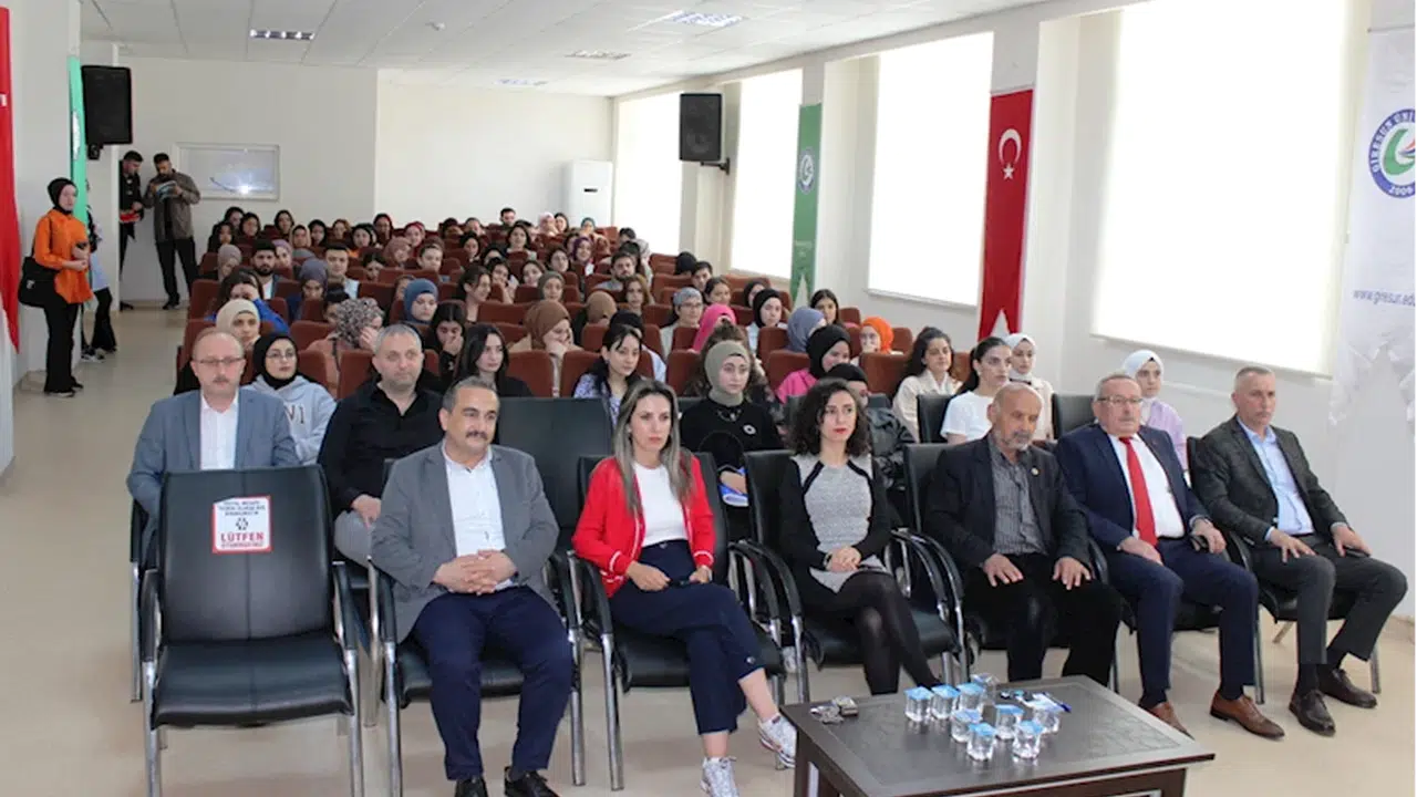 Yüksekokul Müdür Vekili Öğr. Gör. Mevlüt Kaya, konferansın ardından Uzun'a plaket sundu.