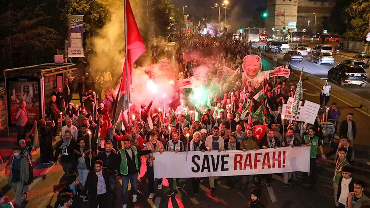 Gazze'deki İsrail saldırılarının bitmesi ve Filistin'in özgürlüğü için düzenlenen eylem, akşam namazının ardından Edirnekapı Mihrimah Sultan Camiî’nin önünden başladı. Bir araya gelen binlerce katılımcı, kortej halinde Eyüpsultan Meydanı’na kadar yürüdü. Yürüyüş boyunca, “Katil İsrail Filistin’den Defol, Free Free Palestine, Katil İsrail İşbirlikçi ABD, Nehirden Denize Özgür Filistin” sloganları atıldı, tekbirler getirildi.