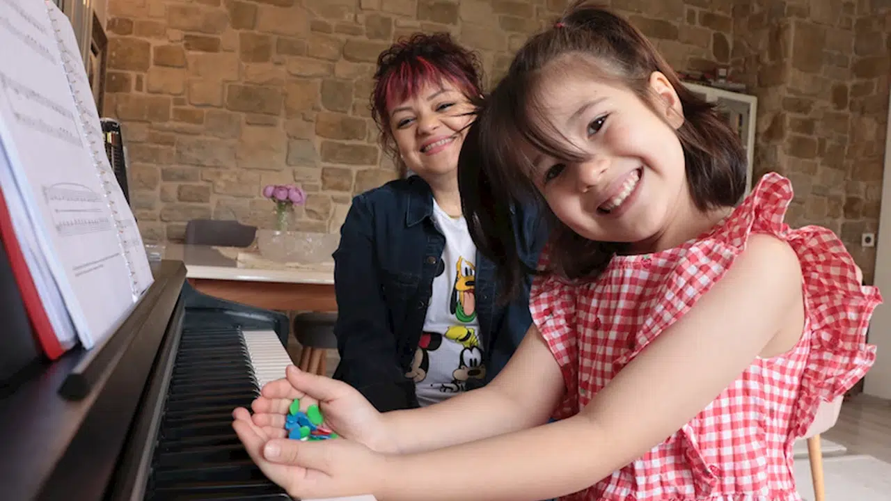 Furkan KAVUKLU/KAYSERİ, (DHA)- KAYSERİ'de Rüya Sarıca (7), müzik öğretmeni eşliğinde, piyano tuşlarının üzerine renkli fasulye tanelerini yapıştırarak 5 yaşında piyano çalmaya başladı. Fasulyelerin renklerine göre notaları öğrenen Sarıca, mart ayında online ortamda video gönderdiği yarışmada dünya birinciliği elde etti. Müzik aletlerini çalmanın eğlenceli olduğunu söyleyen Rüya Sarıca, "Piyanoya fasulyeler ile başladım. Sonrasında belirli bir seviyeye gelince fasulyeleri kullanmayı bıraktım. Herkes istediği müzik aletini çalabilir. Öğrendikten sonra insana basit geliyor" dedi.