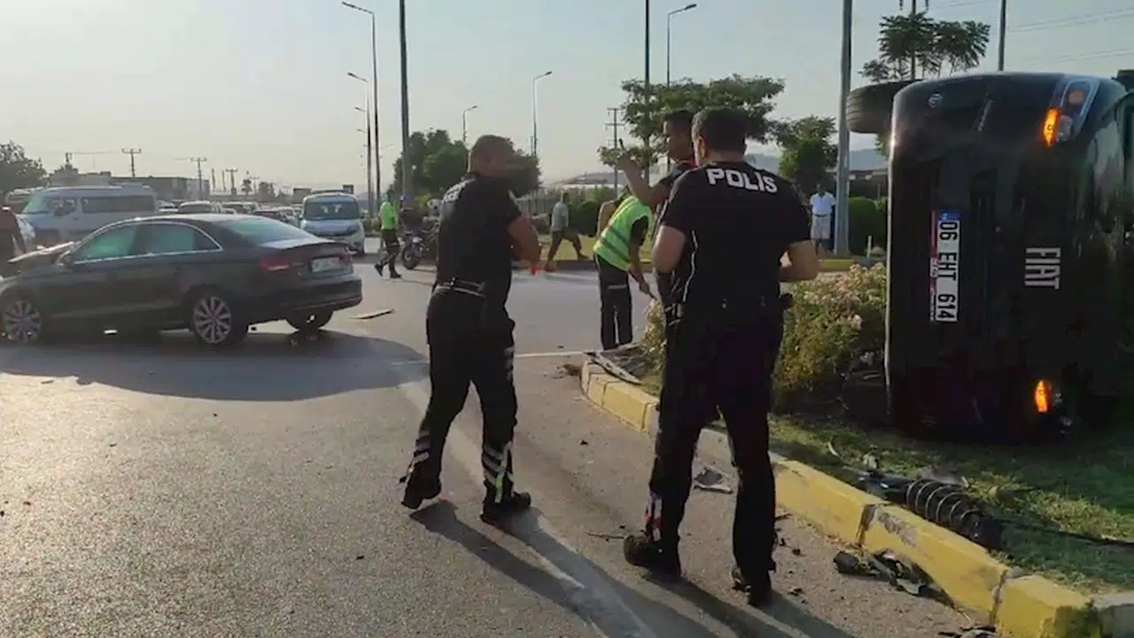 Öte yandan, kaza anı çevredeki iş yerlerinin güvenlik kameralarına an be an kaydedildi. Görüntülerde, şerit değiştiren minibüse, hızlı bir şekilde kavşağa giren otomobilin çarpma anı ve ardından minibüsün devrilmesi yer alıyor. (DHA)