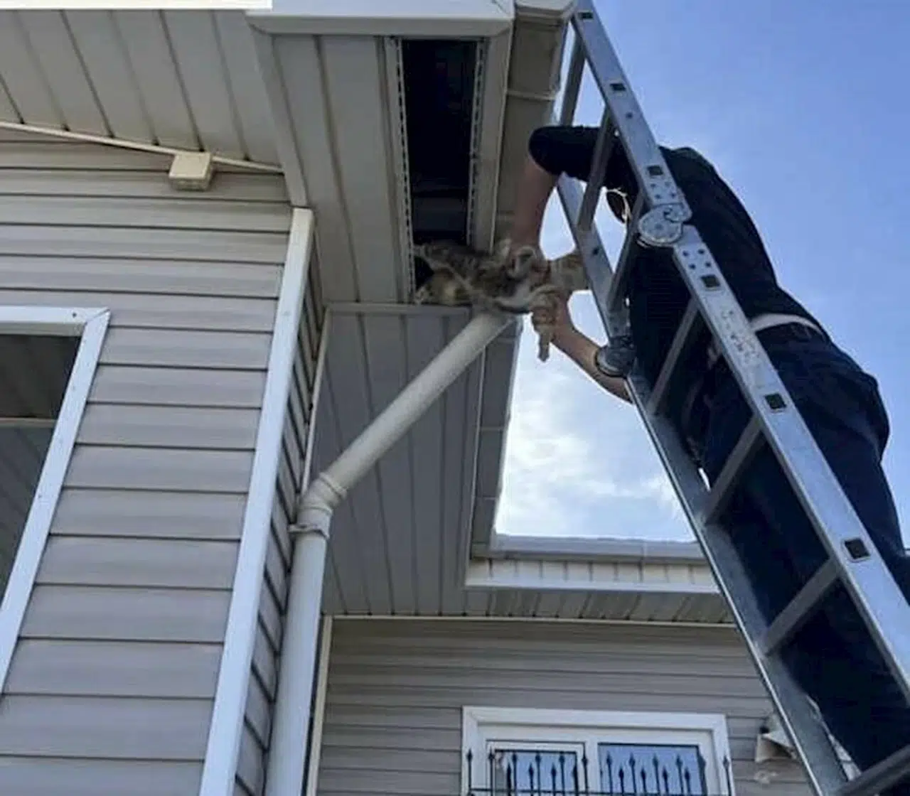 Fethiye Şehit Yasir Ağır Çok Programlı Anadolu Lisesi'nde, öğrenciler ve kantin işletmecisi çatıdan kedi sesi geldiğini fark etti. Sesin geldiği yere bakıldığında, bir kedinin mahsur kaldığını fark edilip, durumu itfaiyeye bildirildi. İtfaiye ekipleri, tek katlı binanın çatısına merdiven yardımıyla ulaştı. Ancak tüm uğraşlara rağmen kedi, kendisini kurtarmak isteyen itfaiye ekiplerine yaklaşmadı. Bunu üzerine zaman zaman kediyi beslediği öğrenilen kantin işletmecisi, merdivene çıkarak kediyi bulunduğu yerden almak istedi. Kedi, kantincinin sesini tanıyıp, yaklaşınca bulunduğu yerden indirilerek, kurtarıldı. Kurtarma anında kantin işletmecisi ile kedi arasında geçen diyalog ise çevredekileri gülümsetti. (DHA)