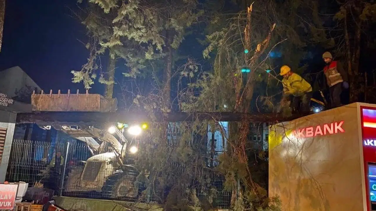 Parklar ve Yeşil Alanlar Dairesi ile İtfaiye Dairesi Başkanlığına bağlı 131 personel ve 61 araç ile gece boyu fırtına mesaisi yaptı. Ekipler, çatı uçması, ağaç ve baca devrilmesinin yanı sıra tehlike oluşturan parçaya müdahale olmak üzere 50 olaya müdahale etti.