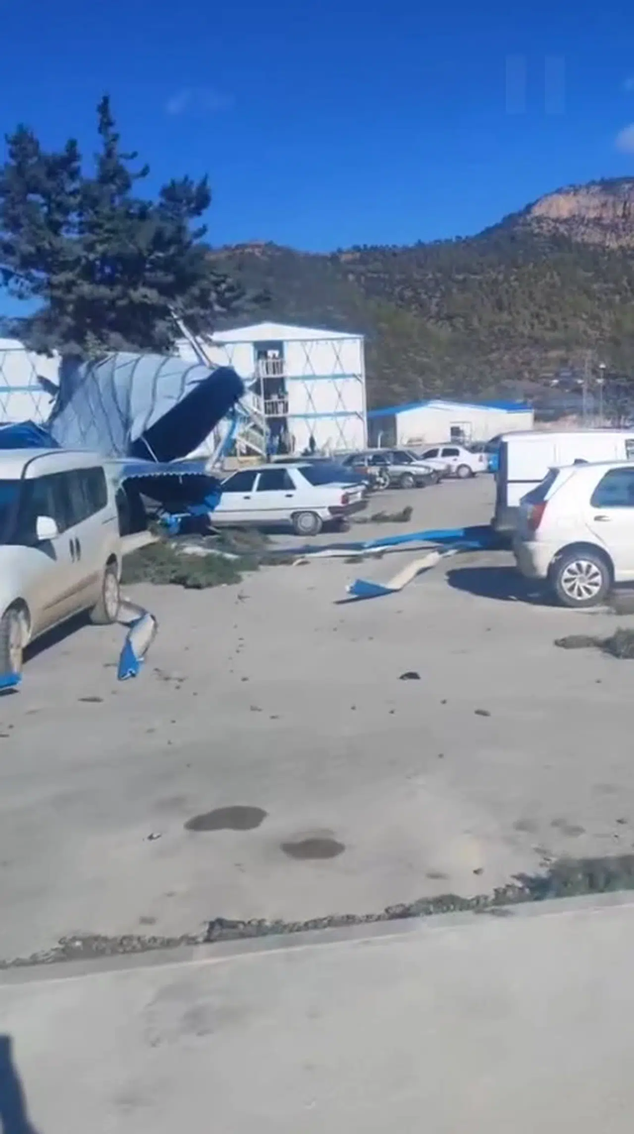 Soner AYDIN/GÜLNAR (Mersin), (DHA)- MERSİN'in Gülnar ilçesinde işçilerin kaldığı prefabrik kampta, fırtına nedeniyle çatılar uçtu. Olayda 2 kişi ağır yaralandı.