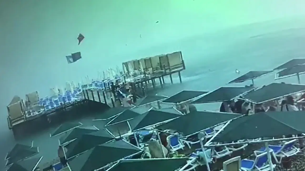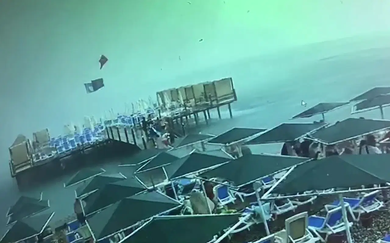 Levent YENİGÜN/KEMER (Antalya), (DHA)-ANTALYA'nın Kemer ilçesinde kuvvetli fırtına nedeniyle iskeledeki şezlonglar suya düştü, plajdaki şemsiyeler uçtu. Fırtına ile tatilcilerin yaşadığı panik, güvenlik kamerasına yansıdı.