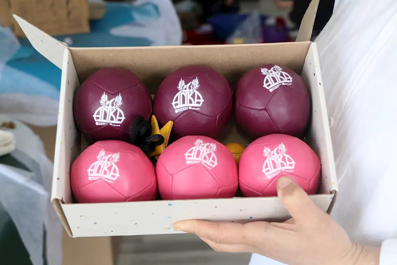 Aysel Özcan, bocce topunun yanı sıra futbol ve voleybol topu dikmeye devam edeceklerini aktardı. (DHA)