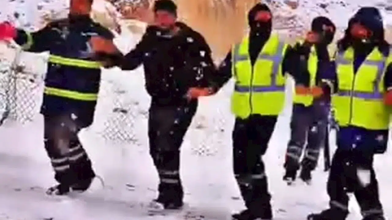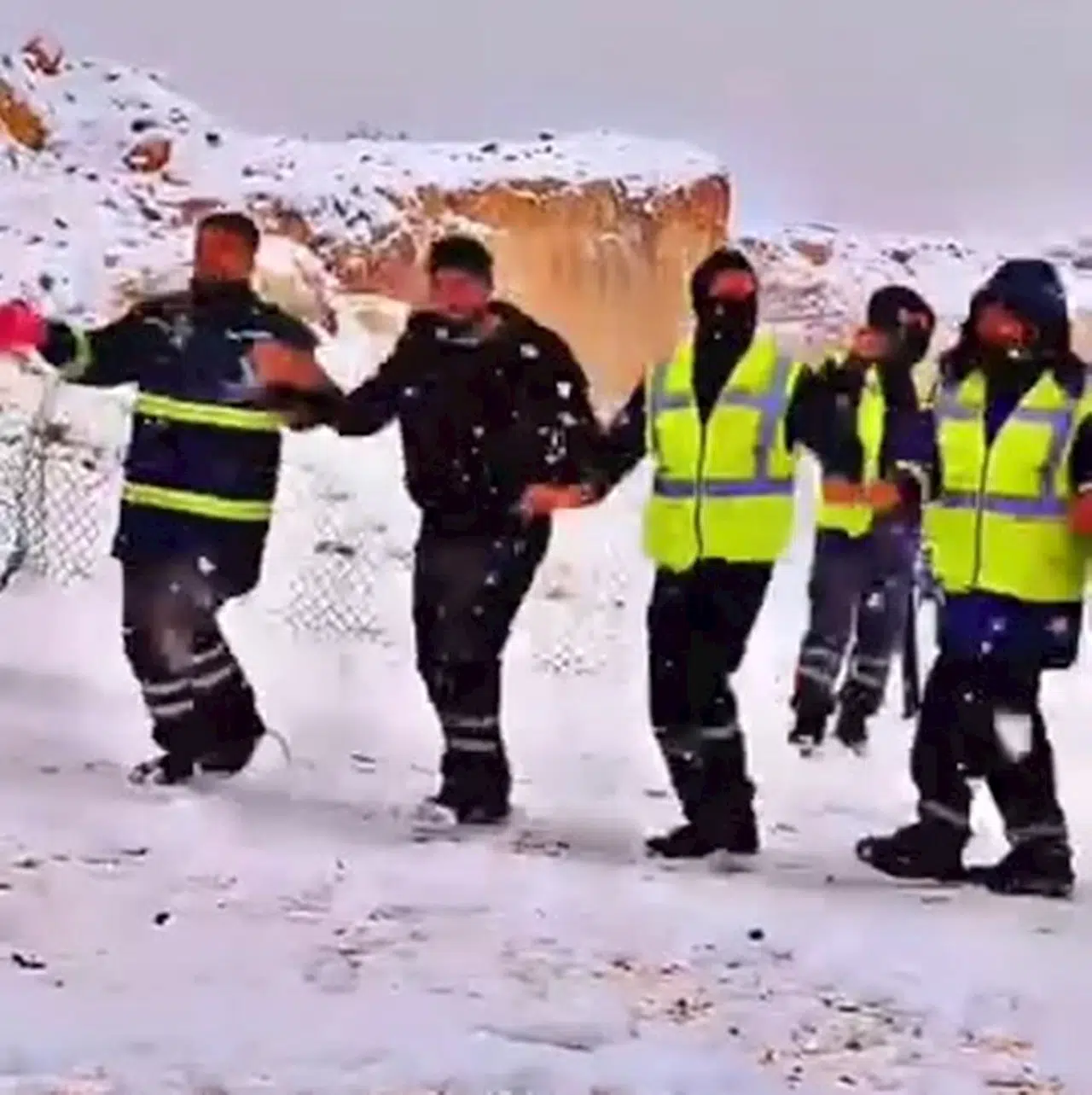 Gabar Dağı’nda işçiler, kar yağışını halay çekerek kutladı