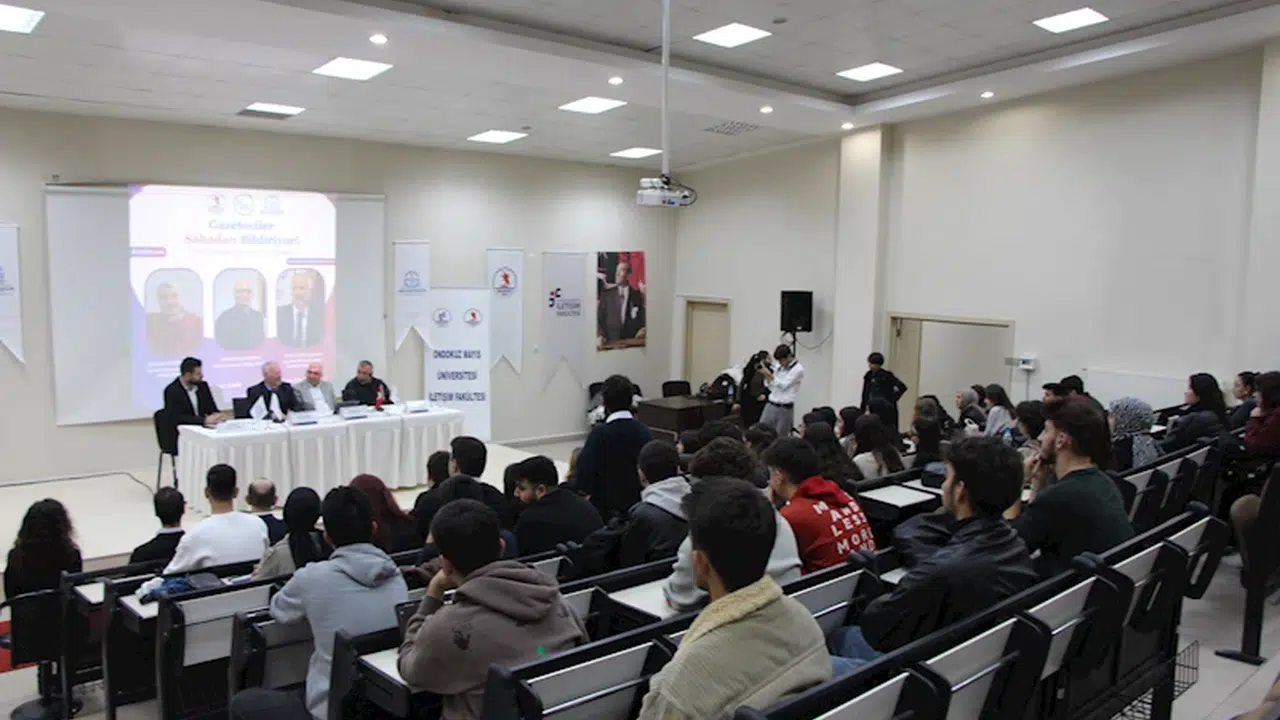 OMÜ Çarşamba Mustafa Kemal Güneşdoğdu Kampüsü İletişim Fakültesi Konferans Salonu'nda düzenlenen panele 19 Mayıs Gazeteciler Cemiyeti Başkanı Yusuf Ziya Çakır, Demirören Haber Ajansı (DHA) Samsun Bölge Müdürü Murat Sandıkçı ve Sabah Gazetesi Samsun Bölge Müdürü İlhan Demircioğlu, konuşmacı olarak katıldı. Panele ayrıca İletişim Fakültesi Dekanı Prof. Dr. Onur Bekiroğlu, Dekan Yardımcısı Doç. Dr. Ömer Çakın, Gazetecilik Bölüm Başkanı Dr. Öğr. Üyesi Gülten Arslantürk, İletişim ve Tasarım Bölüm Başkanı Dr. Öğr. Üyesi Hasan Turgut, Gazetecilik Topluluğu Akademik Danışmanı Arş. Gör. Dr. Özlem Delal Abanoz, akademisyenler ve öğrenciler katıldı.