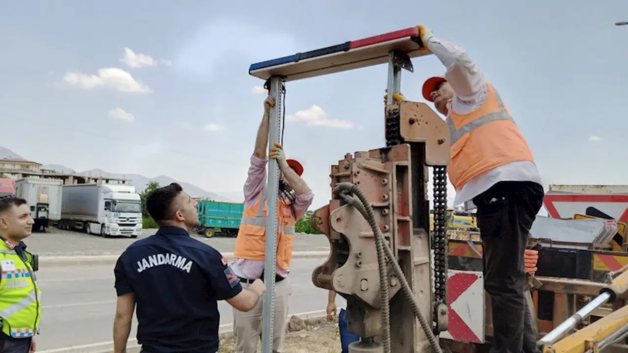 Kadir ÇELİK/ İSLAHİYE, (Gaziantep), (DHA)- GAZIANTEP İl Jandarma Komutanlığı Trafik Jandarma ekipleri karayollarında trafik güvenliğini arttırmaya yönelik İslahiye ilçesinde 3 noktaya 'Çakarlı Tepe Lambası' monte etti.