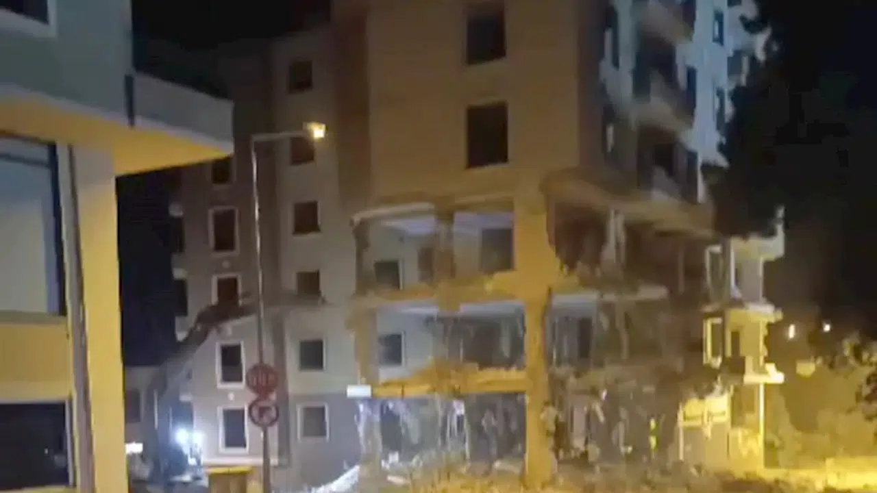 Kahramanmaraş merkezli 6 Şubat 2023 depremlerinin etkilediği kentin İslahiye ilçesinde, Hacıali Öztürk Mahallesi'nde depremden sonra boşaltılan 6 katlı orta hasarlı Tekin Apartmanı için hak sahipleri yerinde dönüşüm hakkından faydalanmak isteyince yıkım kararı verildi. Dün akşam, bölgede önlem alınmasının ardından ekipler, kontrollü yıkım çalışması başlattı. Ekiplerin iş makineleriyle çalışması sırasında apartman bir anda çöktü. Çökmeyle, etrafı toz bulutu kaplarken, yaşananlar çevredekilerin cep telefonu kamerasıyla da görüntülendi. (DHA)