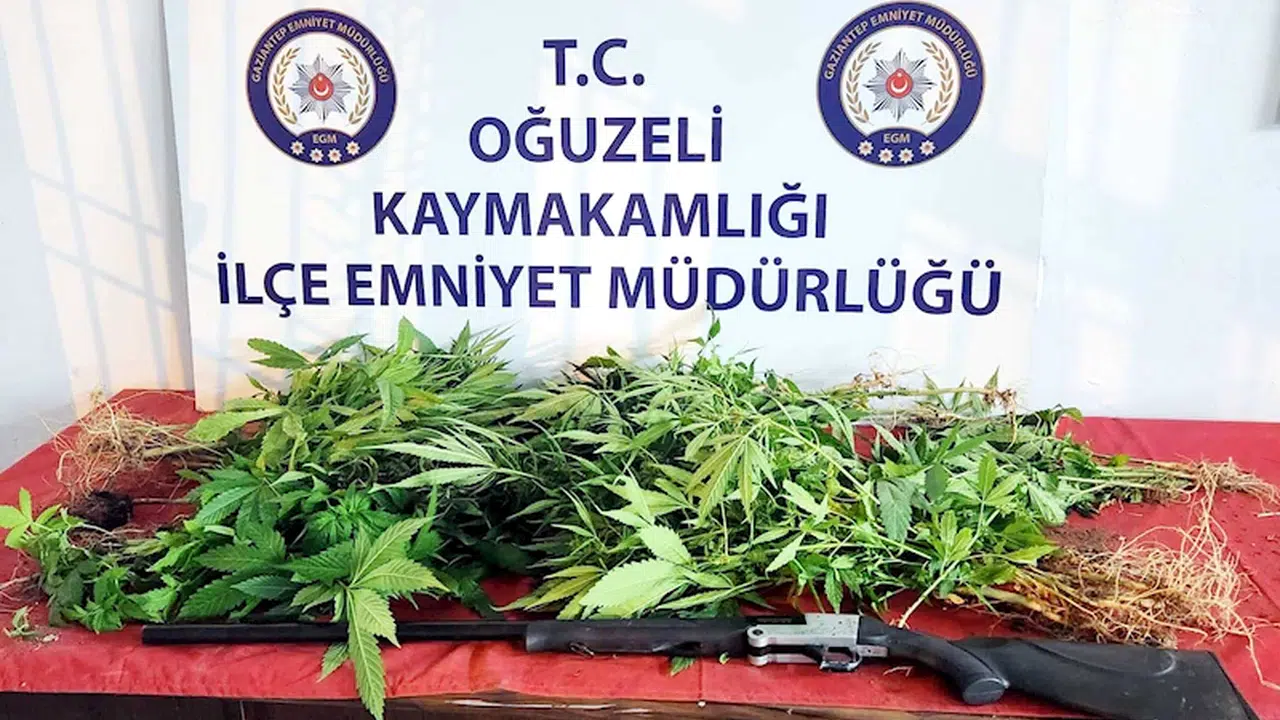 Oğuzeli İlçe Emniyet Müdürlüğü ekipleri, uyuşturucu ticaretinin önlenmesine yönelik yürüttüğü çalışmalar kapsamında bir adrese operasyon düzenledi. Operasyon kapsamında arama yapılan adreste; 67 kök kenevir ile 1 tüfek ele geçirildi. Kenevir ve tüfeğe el koyan ekipler, ismi açıklanmayan 1 şüpheliyi ise gözaltına aldı. Şüphelinin emniyetteki işlemleri sürüyor.
