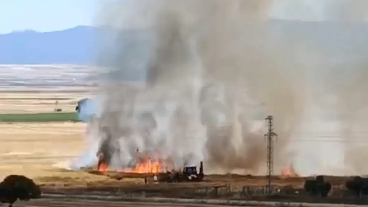 Yangın, İlçe merkezine 10 kilometre uzaklıktaki Zincirli Mahallesinde meydana geldi. İddiaya göre hasat sırasında biçerdöverden çıkan kıvılcım, arazideki buğday başaklarını tutuşturdu. Çevredekiler, yangına su ve çalılarla müdahale edip, itfaiyeden yardım istedi. İhbarla gelen itfaiye ekipleri ile çiftçilerin traktörle müdahale ettiği yangın, kısa sürede kontrol altına alındı. Yangın nedeniyle 6 dönüm ekili alan yandı.