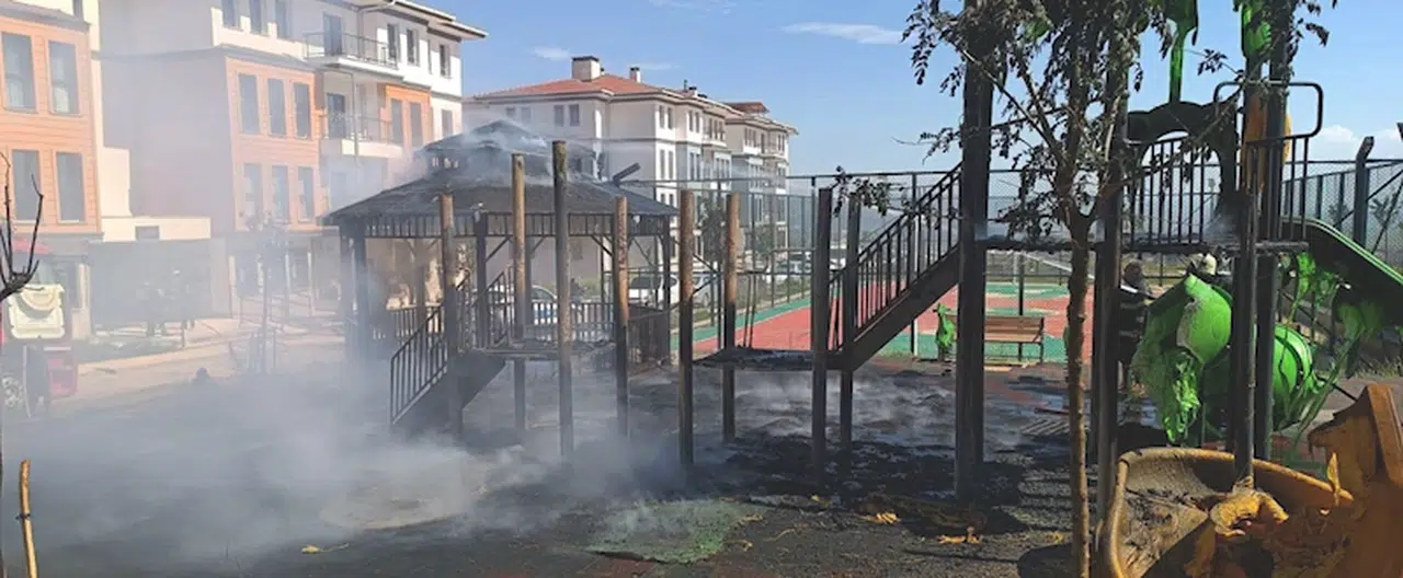 Kadir ÇELİK/ NURDAĞI (Gaziantep), (DHA)- GAZİANTEP'in Nurdağı ilçesinde, çocuk parkındaki oyun grupları alev alarak yanıp, kullanılmaz hale geldi.