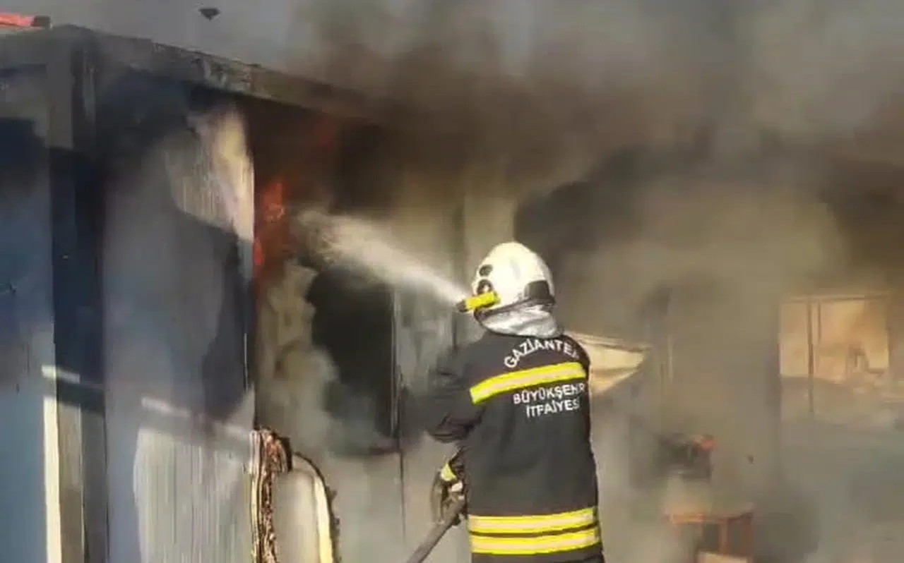Kadir ÇELİK/İSLAHİYE (Gaziantep), (DHA)- GAZİANTEP’in İslahiye ilçesinde, konteyner kentte çıkan yangında 5 konteyner yandı. Buralarda kalan depremzede aileler, başka konteynerleree yerleştirildi.
