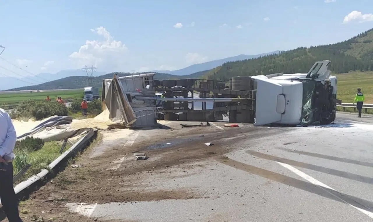 Kaza, öğle saatlerinde Tarsus-Adana-Gaziantep (TAG) otoyolunun 14’ncü kilometresinde meydana geldi. Ferit A.(45) yönetimindeki 47 ADK 166 plakalı kum yüklü TIR, Cakmak Mahallesi mevkiine geldiğinde bilinmeyen nedenle kontrolden çıkarak bariyerlere çarparak devrildi. Kazayı görenlerin ihbarıyla bölgeye sağlık, kurtarma ve jandarma ekipleri sevk edildi. Kazada yaralanan sürücü TIR’dan çıkarılıp ilk müdahalesi yapıldıktan sonra ambulansla Nurdağı Devlet Hastanesi’ne kaldırıldı. Kumların yola saçıldığı TIR’ın devrilmesi nedeniyle ulaşıma kapanan yolda uzun araç kuyruğu oluştu. Kumun iş makinesiyle yoldan toplanması ve TIR’ın vinçle kaldırılmasının ardından yoldaki trafik, 2 saat sonra ulaşım normale döndü.