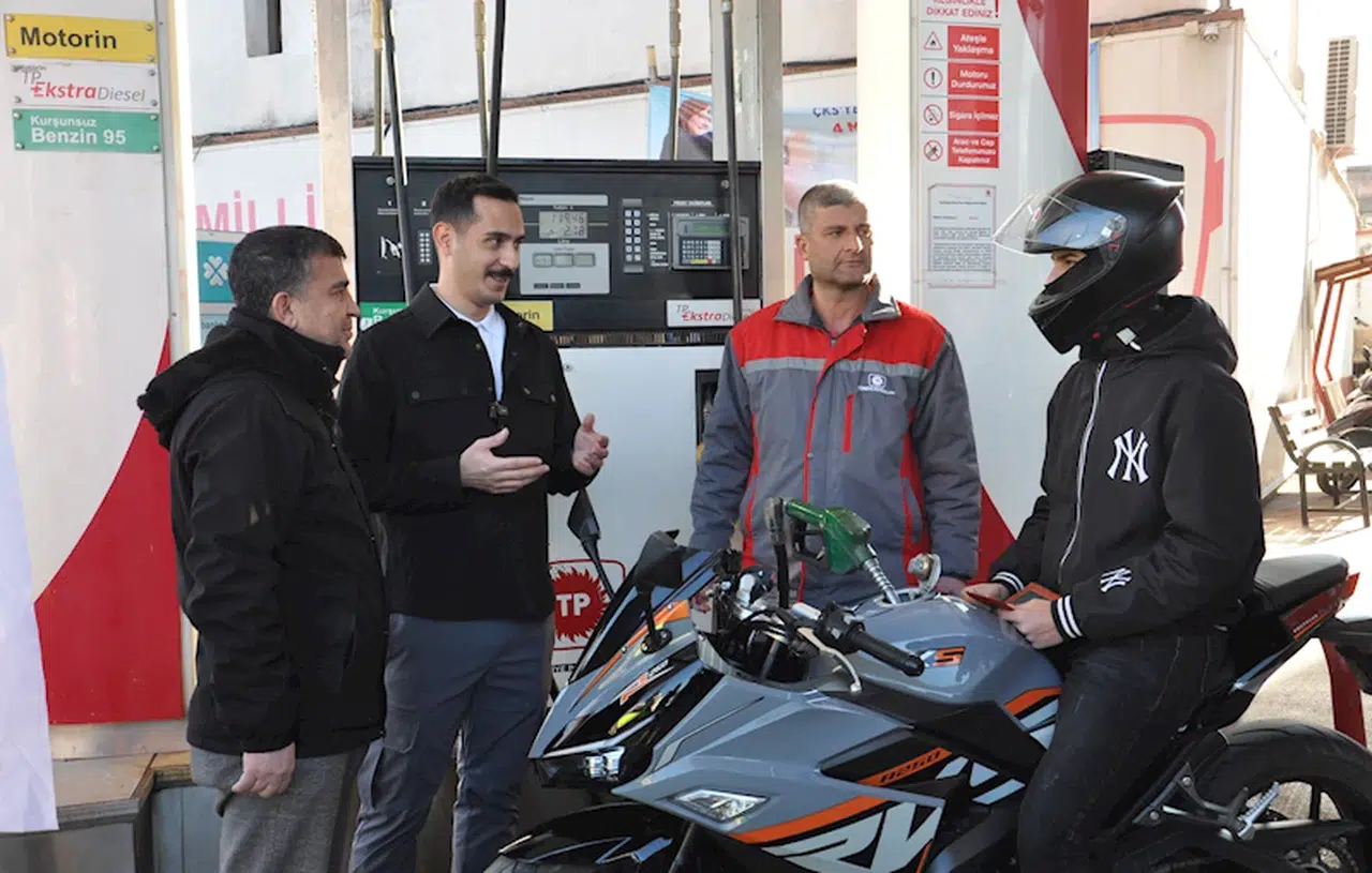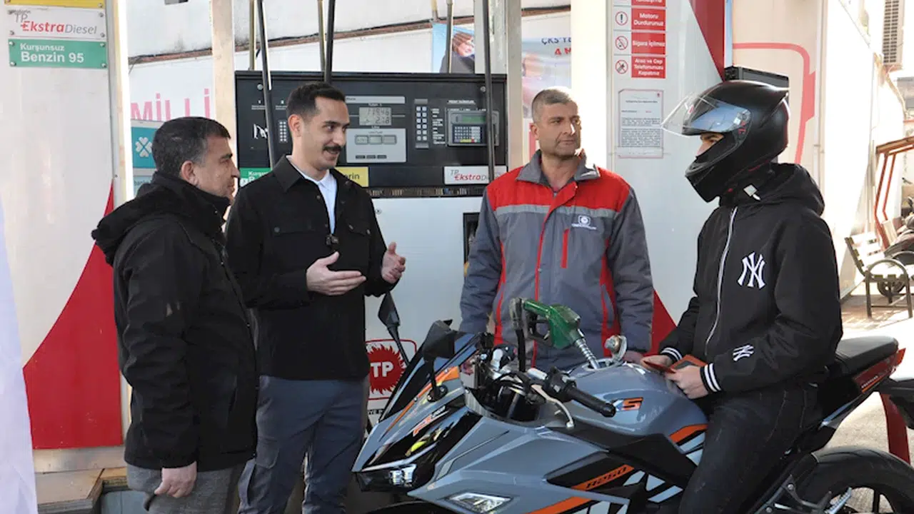 Gaziantep’te kaskını takan motosiklet sürücülerine akaryakıtta indirin
