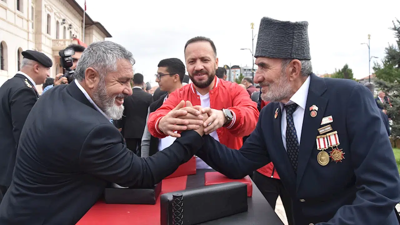 Hüsnü Ümit AVCI-Uğur YİĞİT/SİVAS, (DHA)- SİVAS'ta 19 Eylül Gaziler Günü düzenlenen etkinliklerle kutlandı. Etkinlikler kapsamında düzenlenen spor programında gaziler, bilek güreşi yaptı.