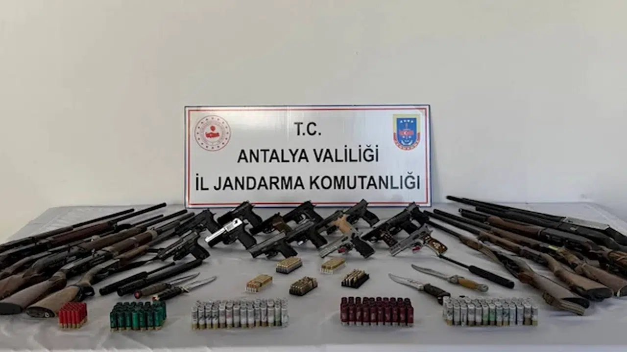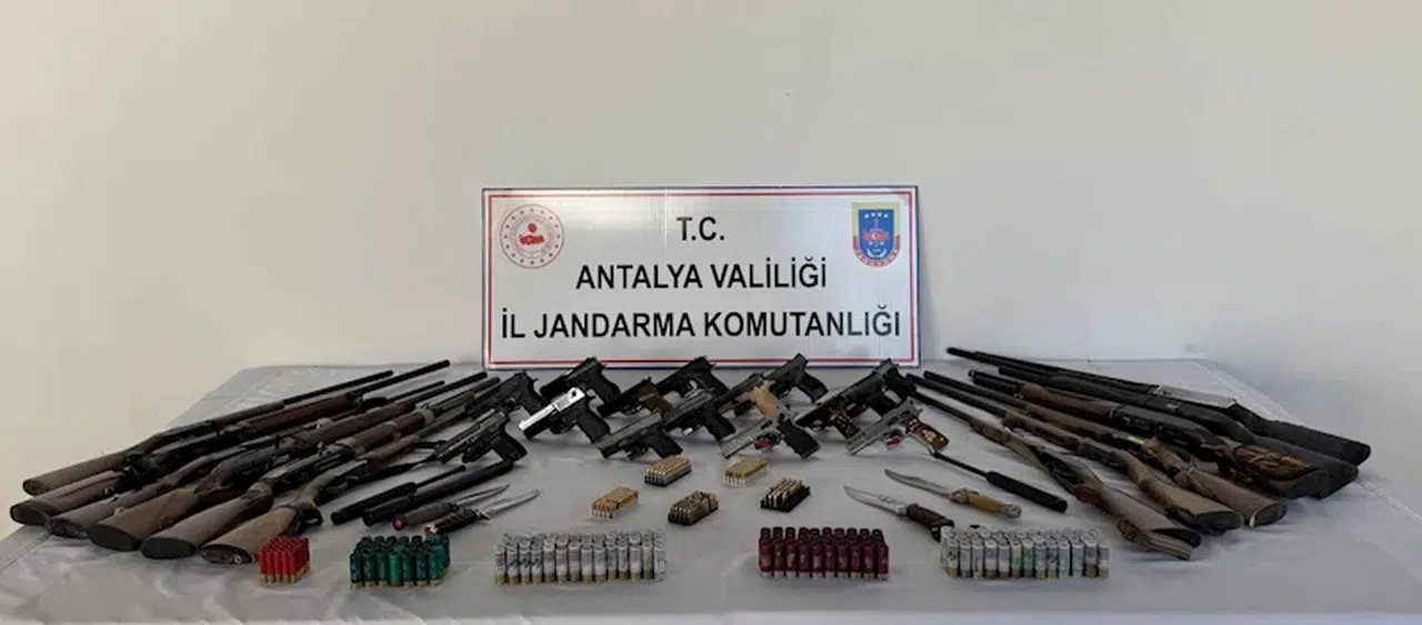 Antalya Cumhuriyet Başsavcılığı'nın talimatları doğrultusunda, Antalya İl Jandarma Kaçakçılık ve Organize Suçlarla Mücadele Şube Müdürlüğü ve Gazipaşa İlçe Jandarma Komutanlığı ekipleri, ruhsatsız silah ve mühimmat bulunduran şüphelilere yönelik operasyon düzenledi. Operasyonda, 15 tabanca ve şarjör, 12 av tüfeği 630 fişek, 4 kasa tura ve 3 Pop ele geçirildi. Olayla ilgili 18 şüpheli hakkında adli soruşturma başlatıldı. (DHA)