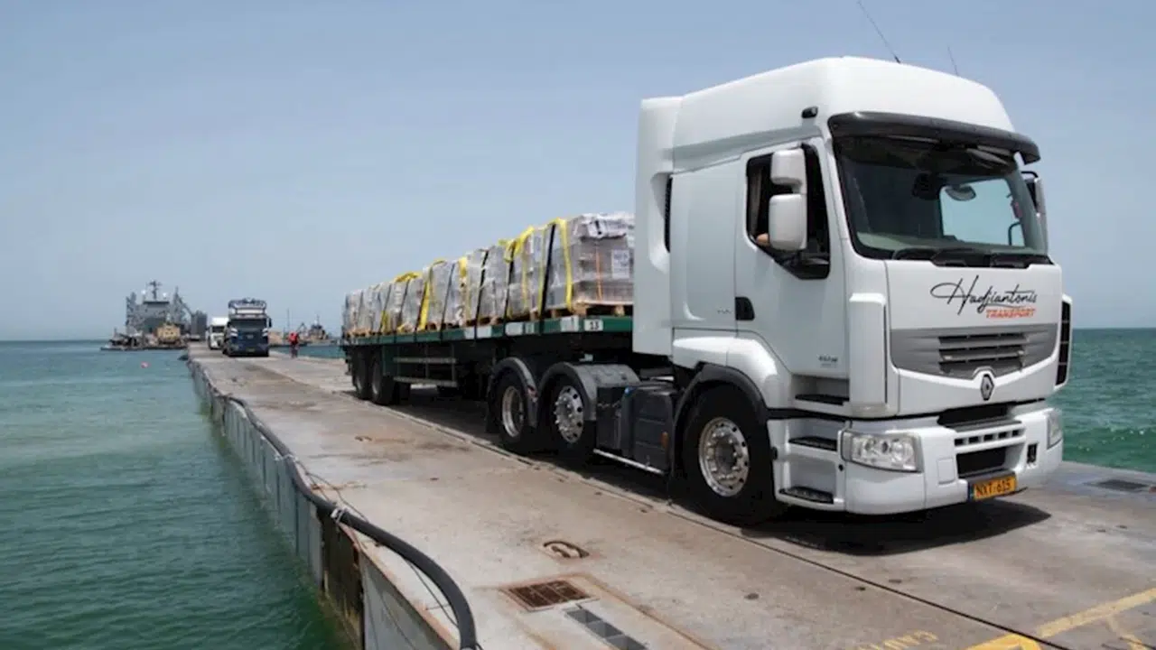 Vahdet AYAZ, (DHA)- Gazze Şeridi’ne kurulan geçici iskele yoluyla insani yardımlar sürüyor.