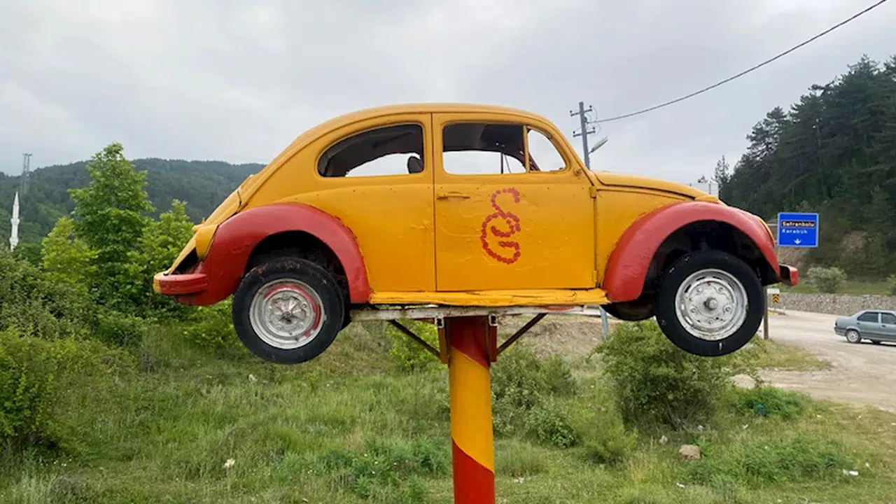 KARABÜK (AA) - Karabük'ün Safranbolu ilçesine bağlı Ovacuma köyü girişinde direk üzerine konulan otomobilin rengi, Galatasaray'ın bu yıl da Trendyol Süper Lig şampiyonu olmasıyla sarı-kırmızı kaldı.