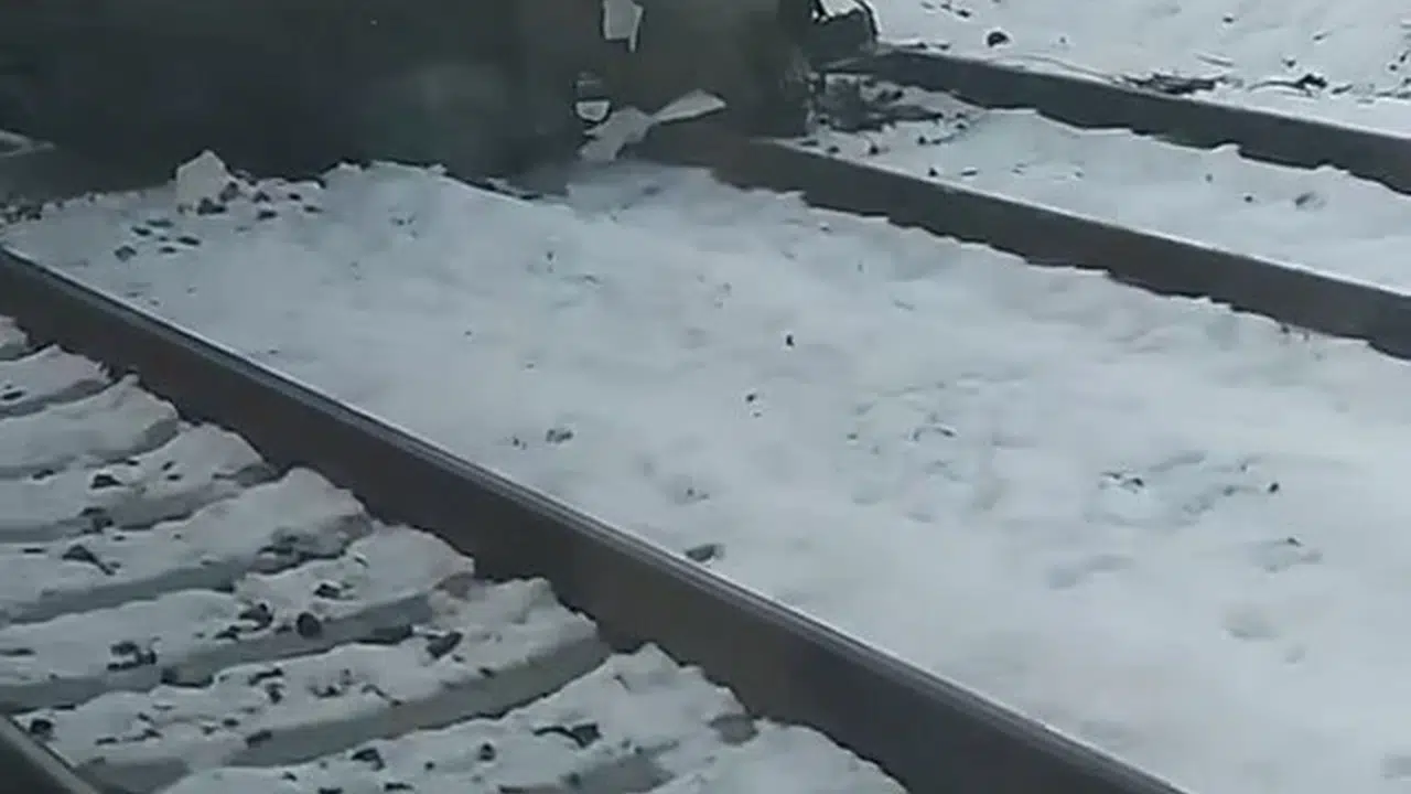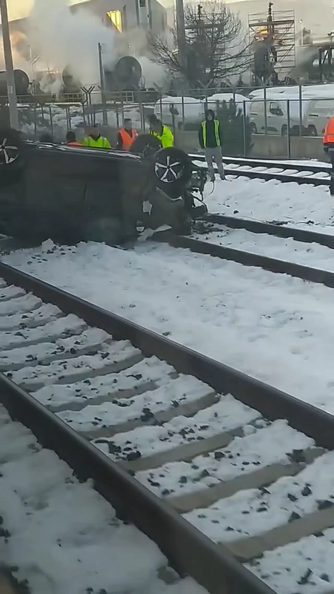 Gemiden indirilen sıfır araç, tren yoluna düştü