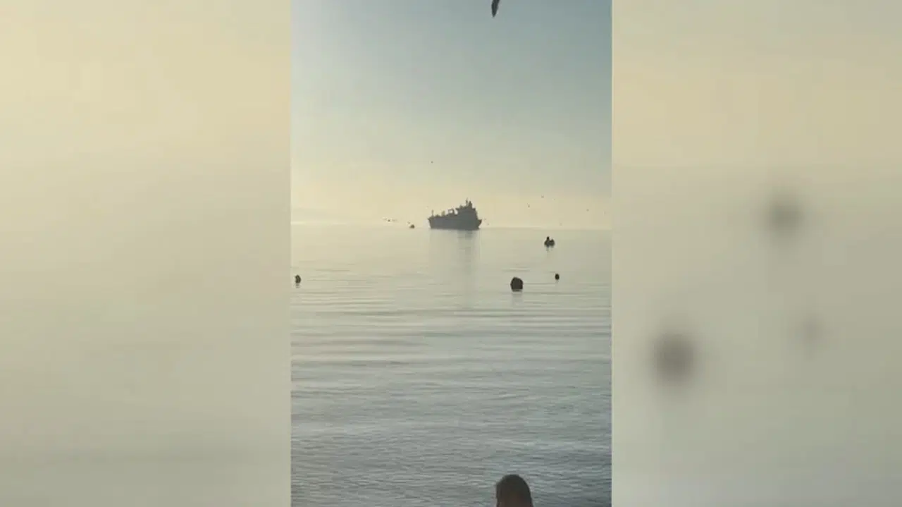 Gemlik'te kötü koku yayan gemi kıyıdan uzaklaştırıldı