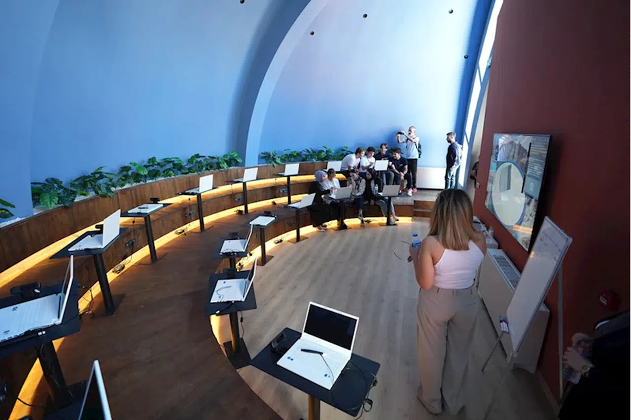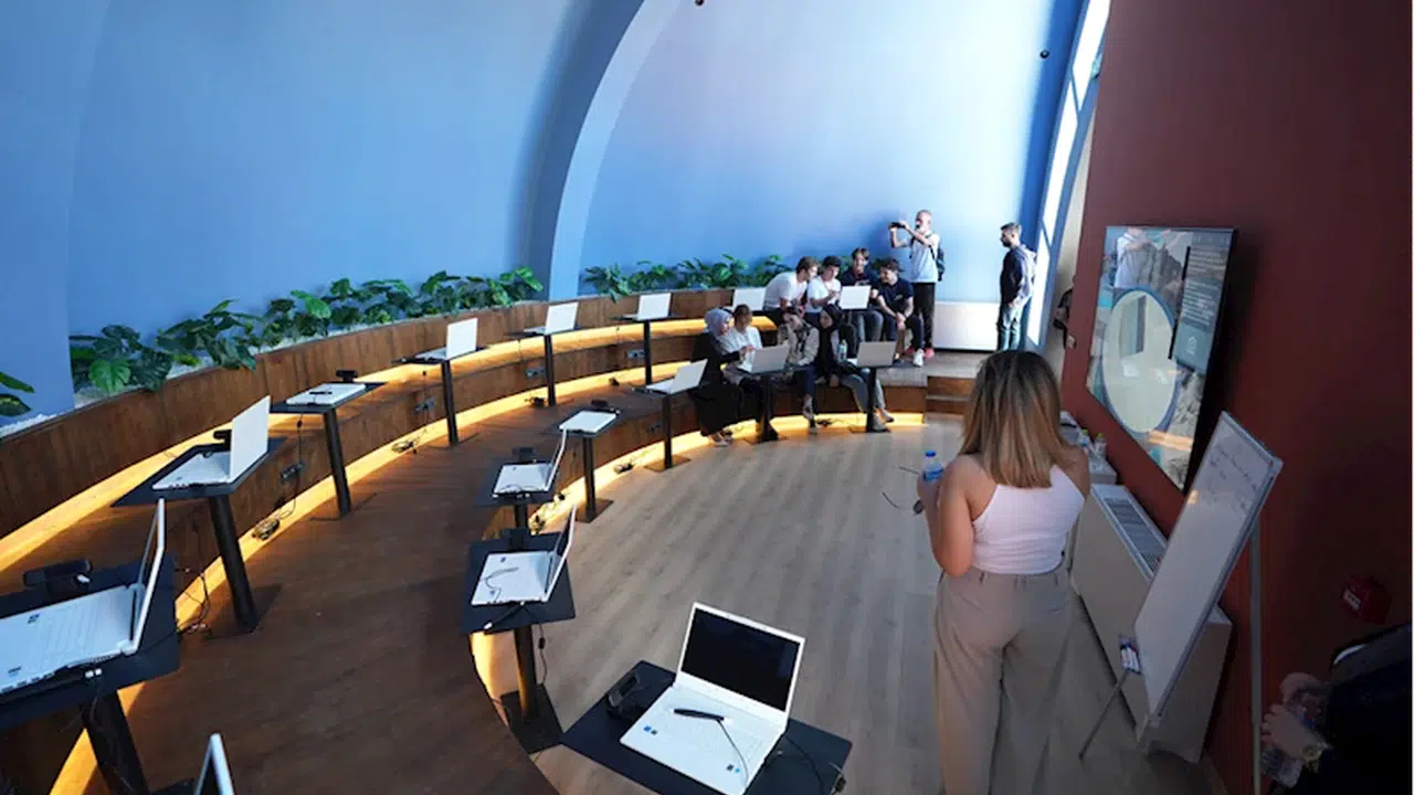 Küre şeklinde dizayn edilen laboratuvar, öğrencilere ders konularını 3 boyutlu sanal ortamda deneyimleme fırsatı sunuyor.
