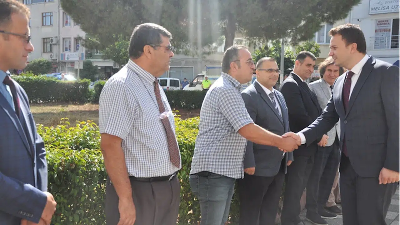 Arabacı'yı Kaymakamlık binası önünde kurum müdürleri karşıladı.