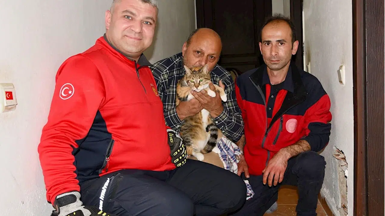 Bulunduğu yerden kurtarılan kedinin yapılan tetkiklerde sağlık durumunun iyi olduğu belirlendi.