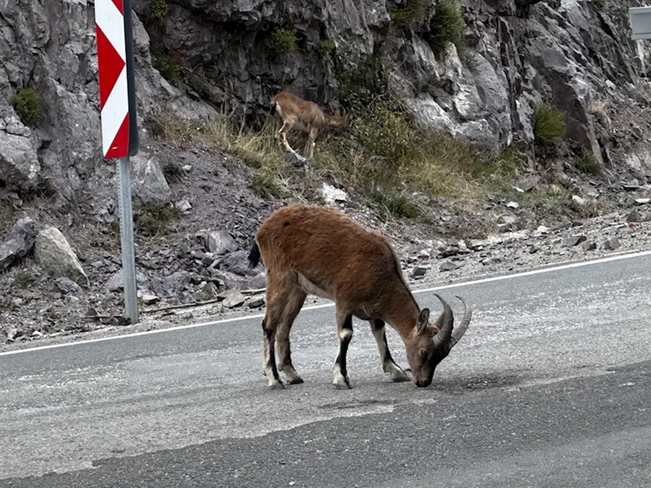 Kara yolunda daha önce de görüntülenen yaban keçileri, bölgede yaşayanların ilgisini çekiyor.