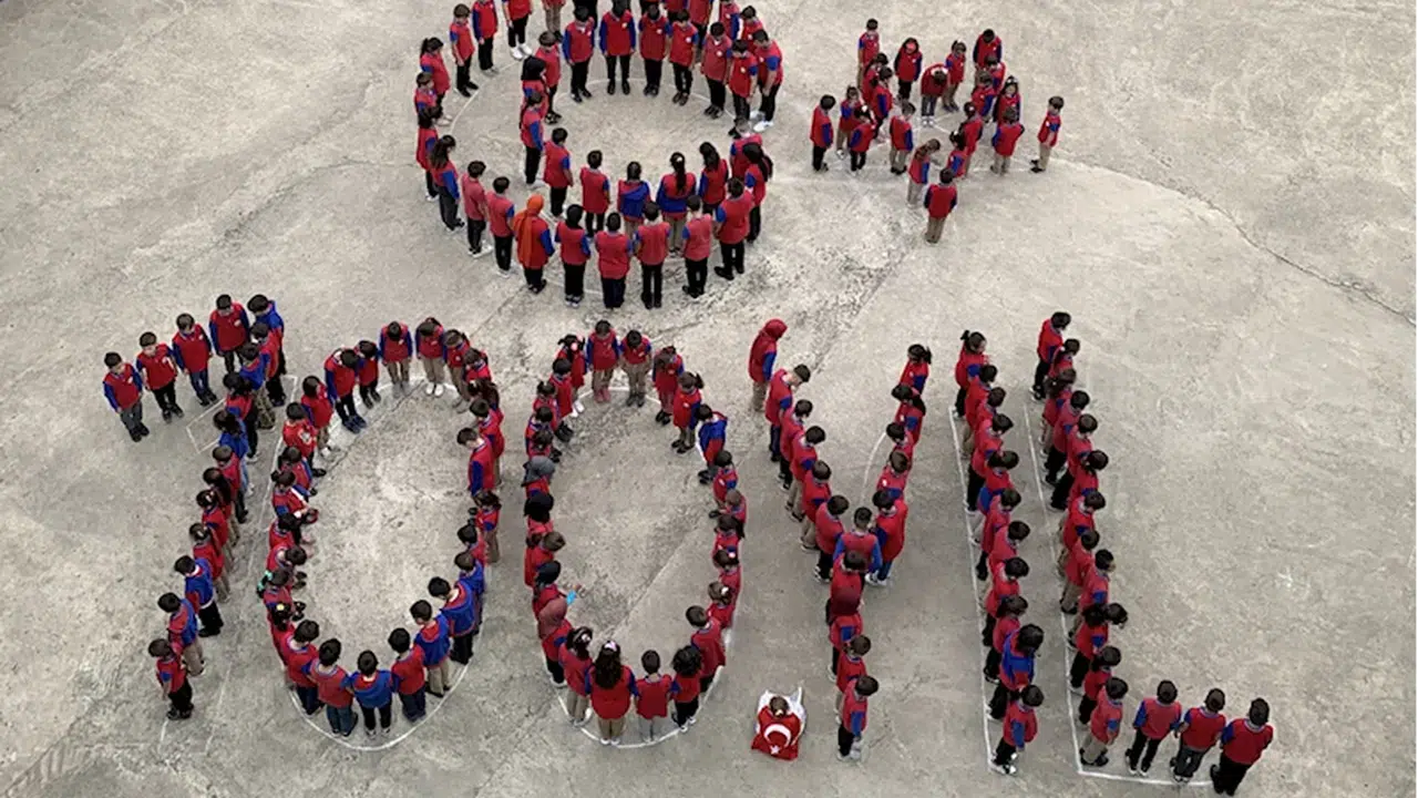 Giresun'da öğrencilerden "100. Yıl" koreografisi