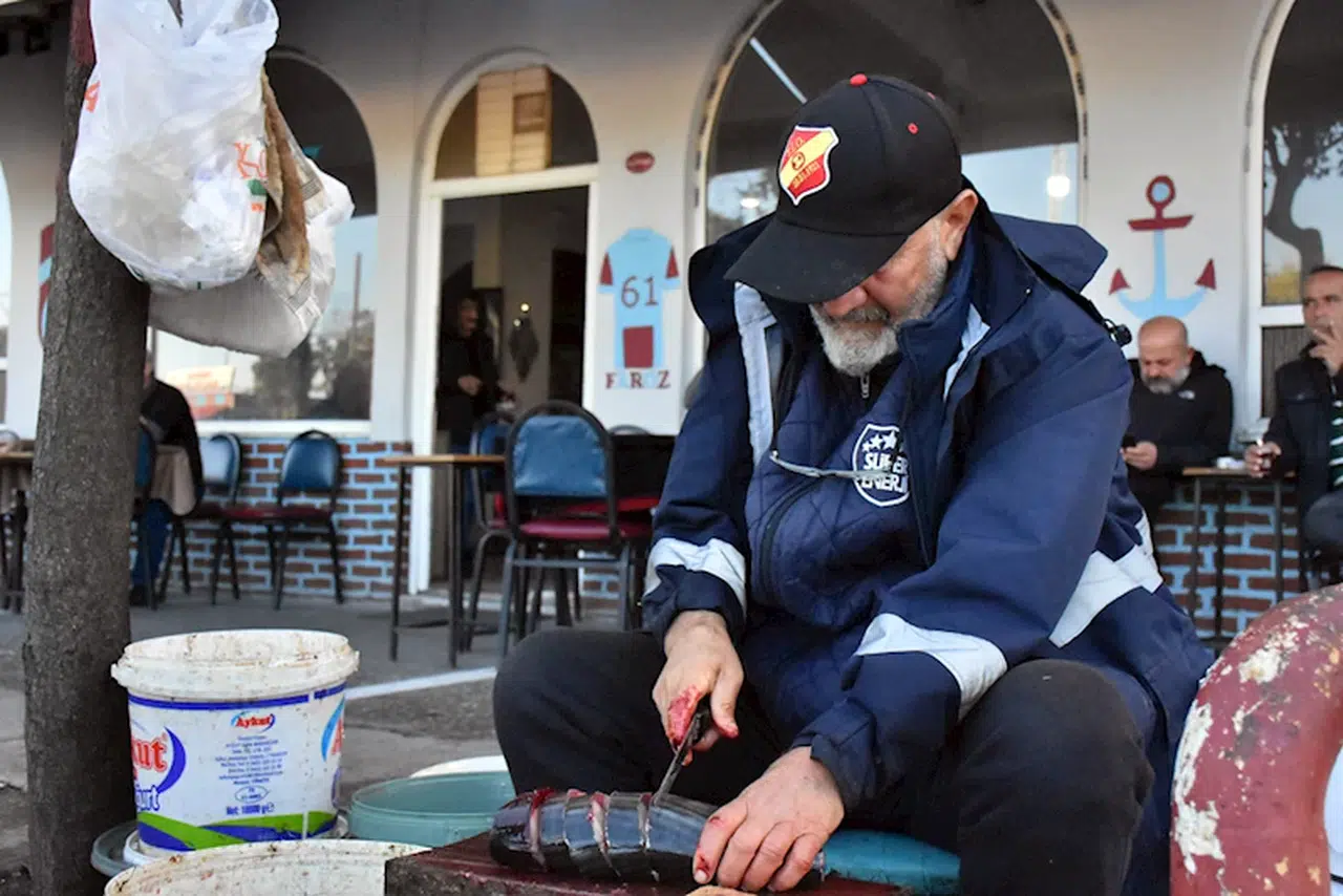 Emekli olduktan sonra denize açılmayı bırakan Özçilingir, mahalledeki kıraathanenin önünde açtığı tezgahta hem balık satıyor hem de cam kavanozlarda lakerda hazırlıyor.