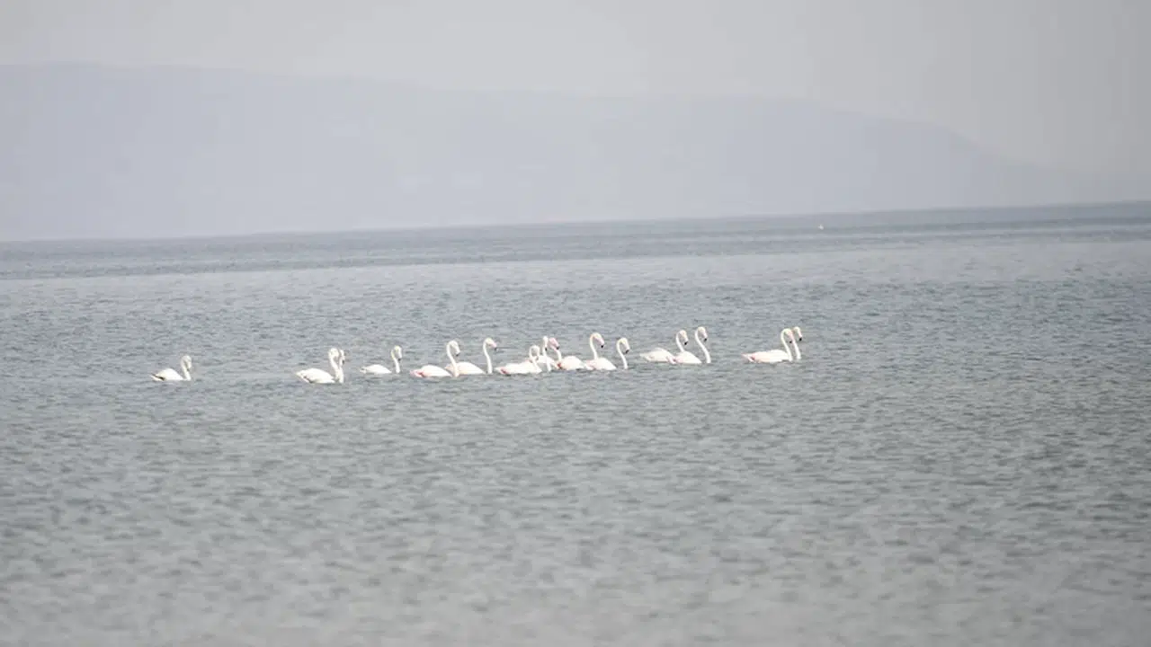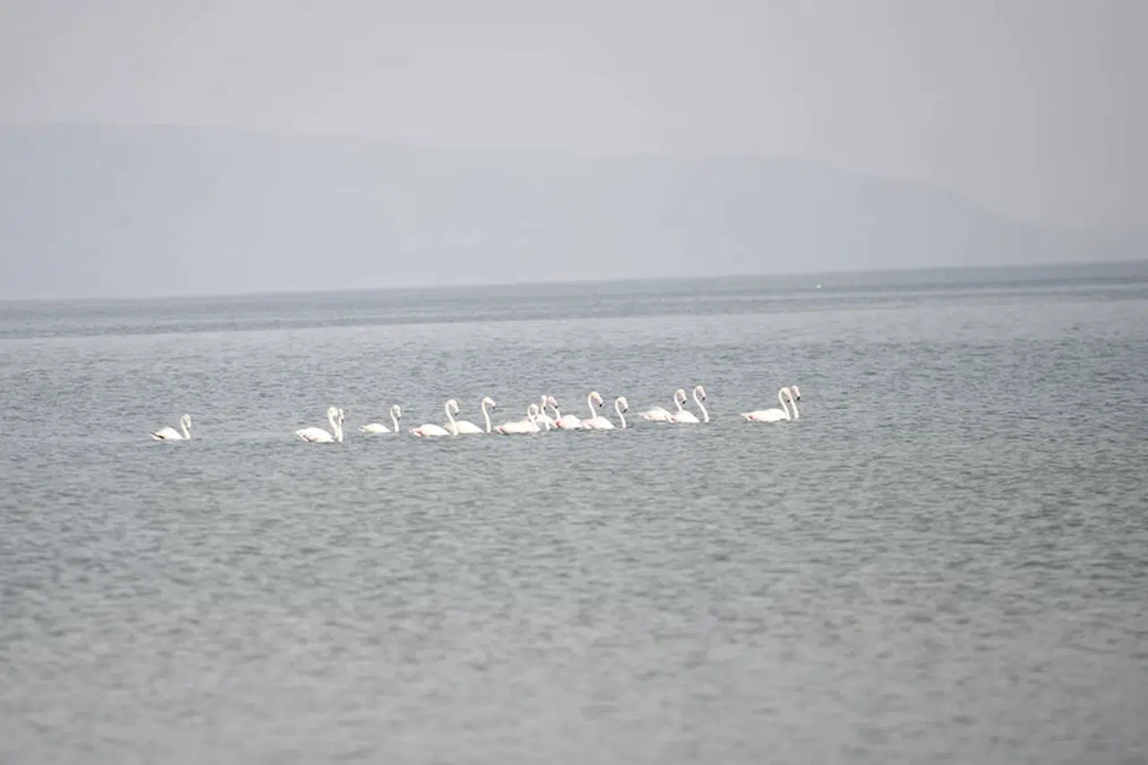 Göç yolundaki flamingolar, İznik Gölü'nde konakladı