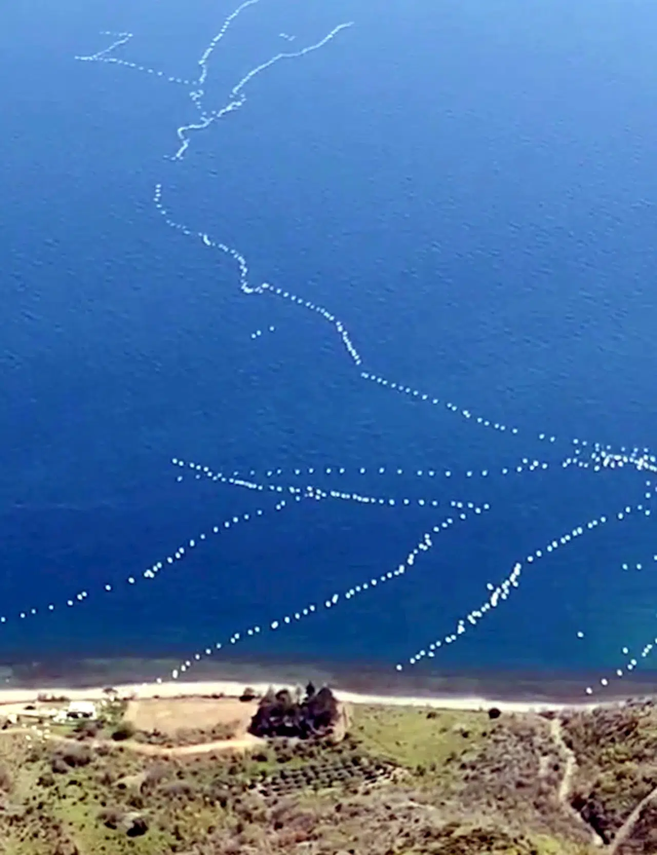 Şarköy ilçesi Uçmakdere mevkisinde göç eden pelikanlar, bir süre semada süzülüp, güzel görüntüler oluşturdu. O anlara tanık olanlar, cep telefonlarıyla pelikanları kaydetti. Uçmakdere'de yamaç paraşütü yapan İmran Karabulut, havadan pelikanları görüntüledi. (DHA)